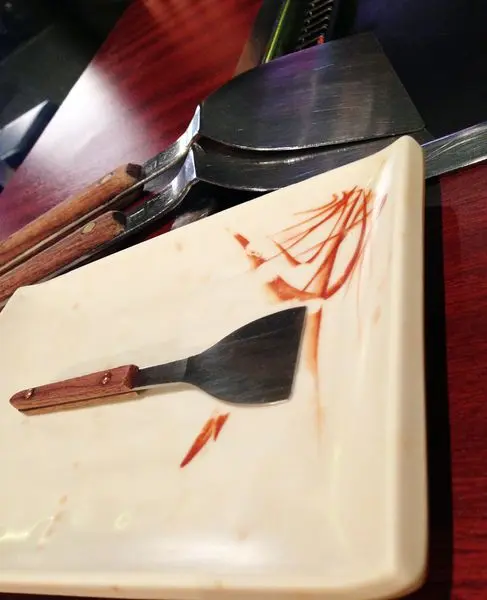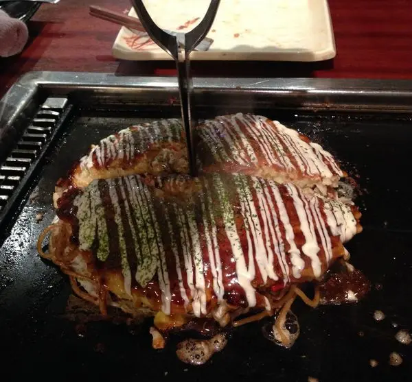 每個座位都有鐵板,話說在台灣吃大阪燒、文字燒我們都抱持著要給店員服務,像在吃鐵板燒一樣的看表演,享受這樣的吃法;但是在日本可是人人都會做,大家都是自己來的,我去日本點完後還愣了很久,才意識到要自己弄,最後還是找了個會說中文的店員服務哈。每次都說下次要自己玩,但在台灣的氛圍之下我真的會自己用嗎哈?