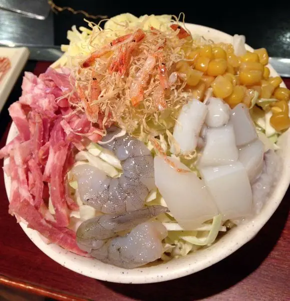 月島文字燒(花枝、蝦仁、培根、年糕)(260元)