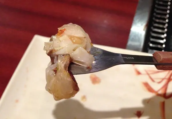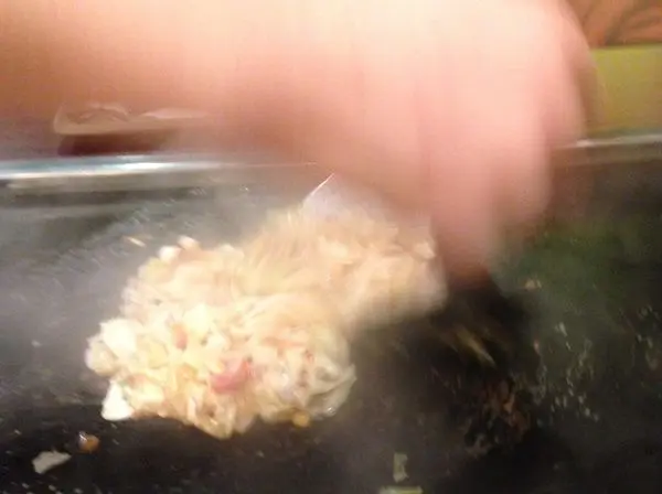 光看送來的這一碗,完全看不出來跟文字燒有啥不一樣,但攪伴下去就知道了,大阪燒比較稠