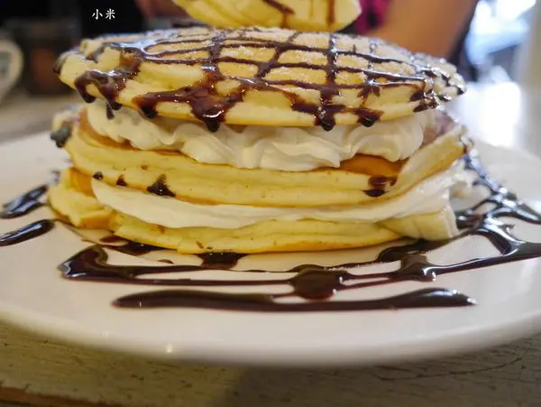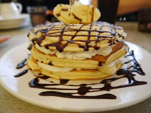 pancake雖然厚度很厚整體不偏乾並帶有麵粉香