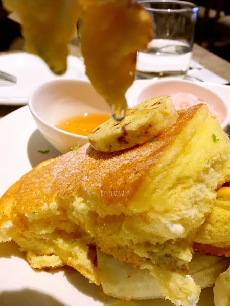 上面還配上自製的蜂蜜奶油增添鬆餅的味道~另外旁邊還附上額外蜂蜜。