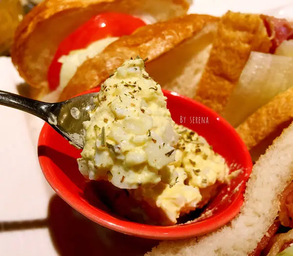 旁邊附上一小球蛋沙拉,可以和三明治做搭配~