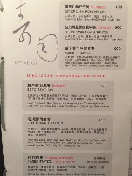 午間套餐從300- 600元 、晚間套餐從900-1200元、或者2000元以上就可以預算配菜,請師傅幫你設計專屬套餐~