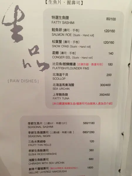 這裡有壽司吧檯和一般包廂, 我個人很喜歡坐在吧檯欣賞師傅們做料理的專業。