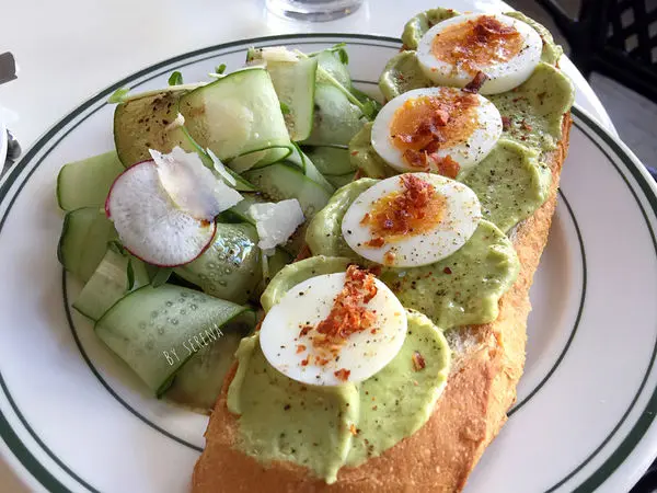很推薦大家吃吃看~這道就是為了愛美的女生設計的,酪梨是美容聖品,旁邊搭配黃瓜片~根本低熱量又美味!