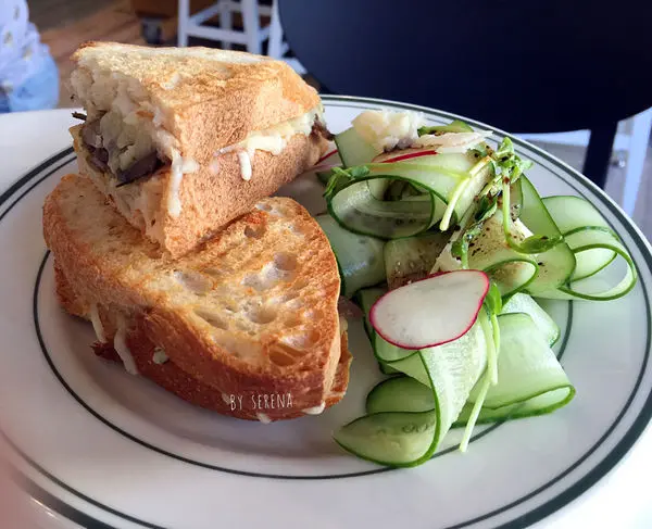這個飽足感比較足,再來裡面的濃濃的起司搭配滑嫩的蘑菇~還有迷迭香提味,其實也屬於清爽的餐點!