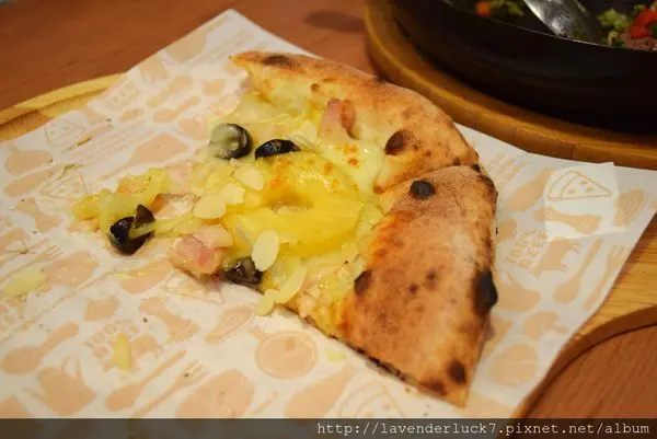 pizza尾巴膨膨的裡面不是像窯烤pizza一樣是空心的,