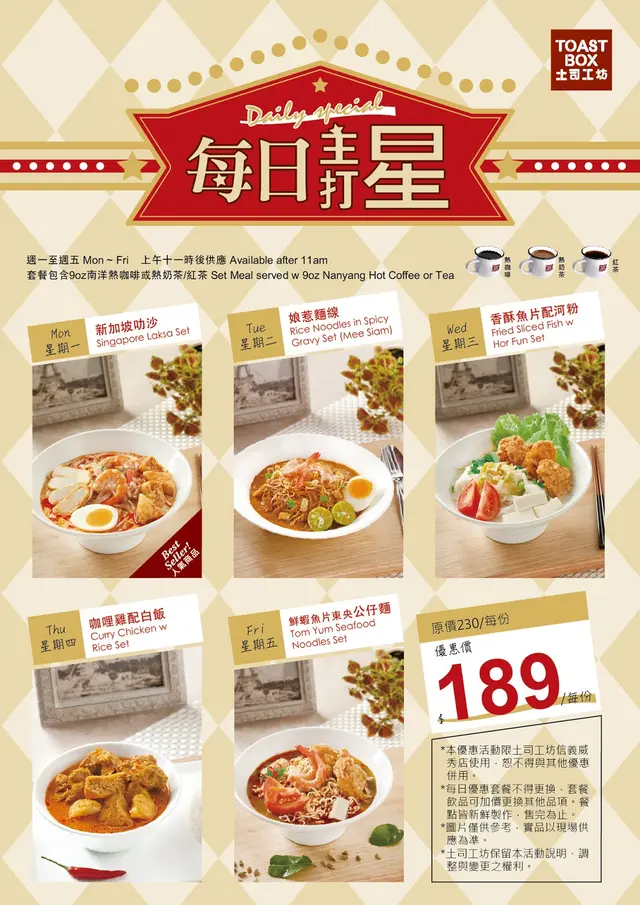 土司工坊(信義旗艦店)推出每日優惠價NT189餐