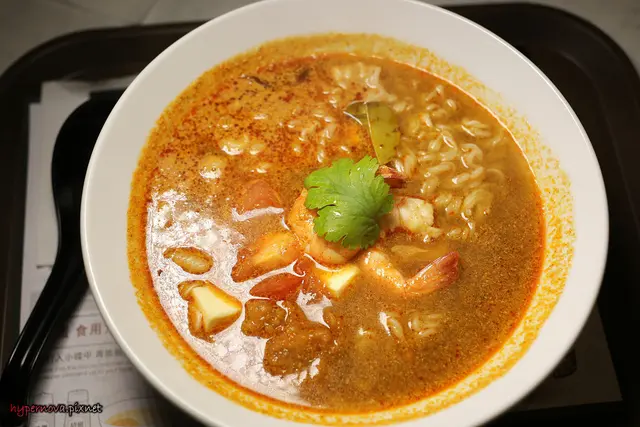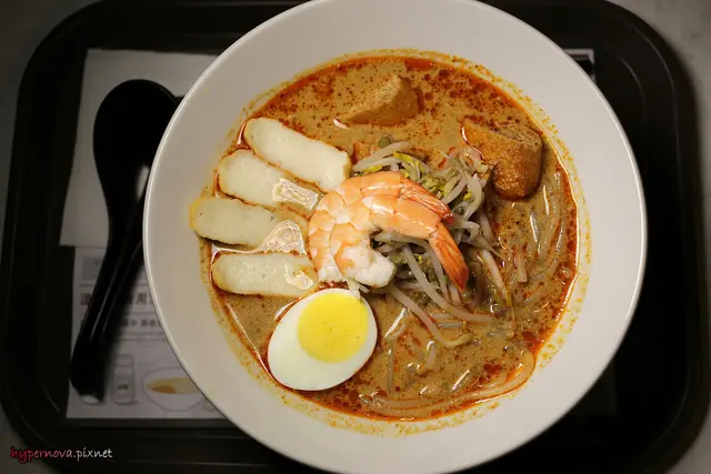 星洲口味的叻沙,是以蝦作為海鮮湯頭再加入叻沙醬一起熬煮最後放入椰漿