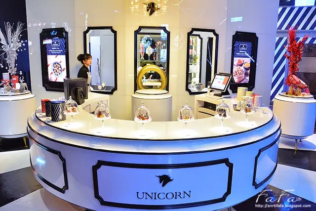Unicorn位於京站五樓,順著電扶梯往上右邊即可看到環狀型櫃台,在暗咪摸電影院中頗顯眼。
