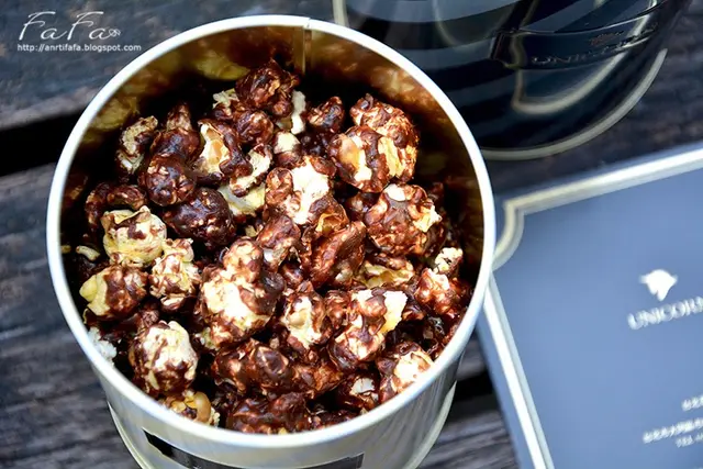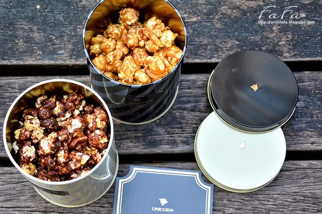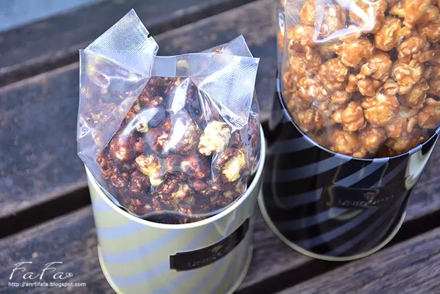 由甜蜜糖衣及順應不同口味甜醬鹹醬、果乾、堅果來包覆住,感受有別於一般爆米花的酥度及空洞,而是清響的爽脆及濃郁香甜味。
