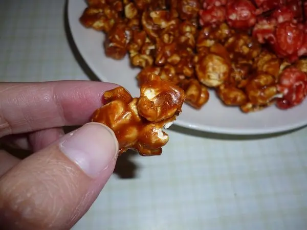 墨西哥香辣口味爆米花外層是深沈的醬色,吃起來的口感,爆米花的甜度中帶著類似BBQ烤肉醬的滋味,偏鹹微辣的口感,吃過後還隱藏些微苦味;法式焦糖杏仁口味爆米花吃起來的口感,爆米花香脆的質感,把焦糖濃郁的甜度襯托出來,還帶著些許杏仁滋味.我最喜愛的口味是美式奶油鹽,美式奶油鹽口味的爆米花吃起來口感,爆米花濃郁奶油的滋味,甜中帶鹹,原來是海鹽的提味,把爆米花的甜度和濃郁感變得可口.