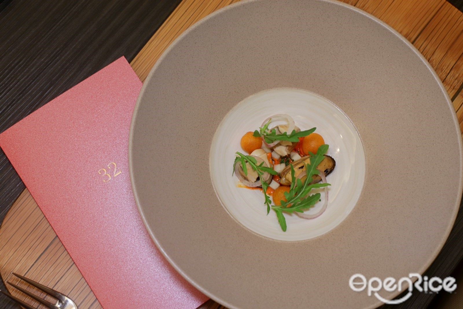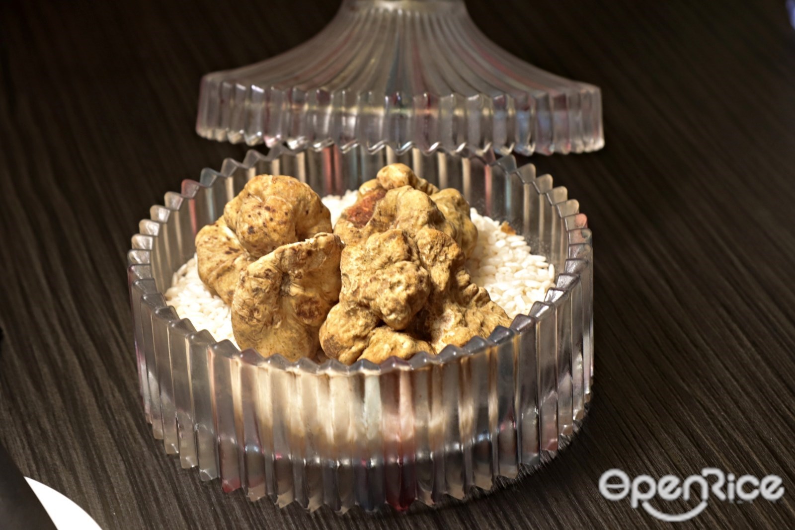 「阿爾巴白松露」是世界上最珍貴的食用菌之一,僅產於義大利皮埃蒙特地區的阿爾巴一帶。這種松露無法人工栽培,必須在特定的環境條件下,自然生長於橡樹、榛樹等樹木的根部。阿爾巴白松露外形不規則、宛如大地雕塑,表面顏色金黃至橄欖綠漸層變化,表面觸感略帶粗糙;內部果肉呈乳白至淡粉紅色,縱橫交錯的白色紋理精緻細膩。三二行館 The Restaurant 秋季限定套餐,就以白松露與「以海啟程的季節風味」為題,捕捉秋日海鮮最為豐潤的時節,將煙燻、香料與果香的細節,層層譜成一曲海與秋的協奏。