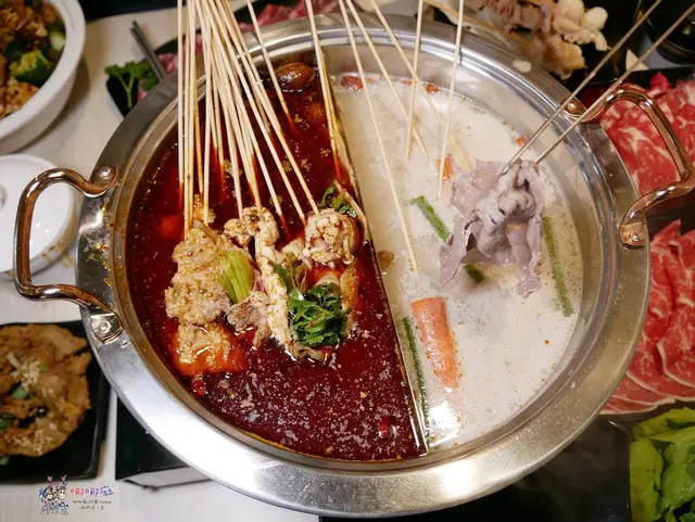 中原大學美食又多一家,一定要來吃個又麻又辣的串串鍋!中原夜市附近開了一家串串鍋,附近有中原大學,離中壢火車站也不算太遠,而且營業到凌晨兩點,大家可以來吃消夜場喔!一口口麻串串的店內裝潢是走有點清水模風簡單舒適的,並且這間是麻豆子旗下新的平價麻辣鍋品牌,店內也可以看到原本麻豆子的痕跡。店內大多都是四人座,也有多人座位,如果要聚餐的話也很方便喔!一口口麻串串的消費方式為點鍋底,分為單鍋和鴛鴦鍋,特別佛心的是,它們兩種鍋的價格是一樣的,有的串串鍋的鴛鴦鍋會另外加價。吃辣的話我會建議點鴛鴦鍋,因為麻辣鍋很麻又很辣,需要一點其他的鍋底來緩緩或換個口味。另外必點的單點就是老干碟、紅薯粉條和椒麻小酥肉,如果人多還可以再點一個缽缽雞。如果不知道要吃什麼也可以直接點套餐,比單點要划算喔!主角當然是串串們啦!吃串串鍋最有趣的是可以自己拿不同串串,愛吃多少拿多少。串串一串都是10元,黑盤則是一盤50元三盤120元,一樣想吃什麼拿什麼,冬天少不了的當然就是茼蒿囉!除了拿串串以外,我們還點了一些其他的肉,畢竟要靠串串吃飽可能要吃很多。湯底湯底我們選鴛鴦鍋,有口口香辣鍋和豚骨藥膳鍋,香辣鍋鍋底有鴨血可以無限續,我覺得挺划算的。串串們他們串串的種類真的太多了,比較特別的是竟然還有雞冠,我們幾乎每一種都拿了一串來吃吃看,反正一串10員也沒有很貴。比較特別的是竟然有軟絲和鮑魚,一定也要拿來吃吃看!我兩邊的鍋底都有下串串,我覺得還是香辣鍋比較夠味,又香又麻又辣非常的過癮,不過吃多了還是覺得有點太辣,可以把蔬菜下到豚骨藥膳鍋煮,這樣可以中和香辣鍋這邊的辣味也比較清爽。特別推薦一下要拿的是薯片,片的薄薄的馬鈴薯片進辣鍋涮一下,可以吃到香麻辣又可以吃到馬鈴薯清脆的口感,這也是大陸那邊很受歡迎的小吃。霜降牛光吃串串當然不夠,我們還點了三種肉類,霜降牛是油脂和瘦肉比較平均的,可以吃到肉香又可以吃到油脂香,推薦可以點。嫩肩牛嫩肩牛其實就是翼板,屬於比較瘦一些的肉中間有一條筋。我自己還蠻喜歡嫩肩牛的,吃起來很香,不管涮辣或不辣都好吃。如果敢吃羊的話可以點小羔羊,沒什麼羊腥味肉質又軟嫩,並且他們肉量都給的不少,可以吃的很過癮。干碟其實就是乾的沾料,大概就是加入花椒粉、辣椒粉之類辣的沾料,和麻辣鍋味道不同的是,干碟很香,包裹在剛涮好的串串外面更增添風味。也可以搭配醬料區免費的油碟,吃起來會更香口感更好。紅薯粉條紅薯粉條其實就是寬版的紅薯粉,也就是酸辣粉裡面的那個『粉』,口感QQ軟軟的。店家把它調味好再和豆芽還有小黃瓜搭配,吃起來酸酸辣辣還有青菜的爽脆,很容易越吃越涮嘴。椒麻小酥肉小酥肉也是四川有名的小吃之一,炸好的豬肉撒上青花椒還有其他調料,味道和麻辣鍋又不太一樣,香香麻麻又酥脆,搭配火鍋剛剛好。缽缽雞缽缽雞具體要講出它裡面有什麼有點難,裡面的料之豐富的讓我覺得應該是把冰櫃裡的料都加進去了,有牛雜、牛筋、牛肚還有木耳、蓮藕等蔬菜,另外加上剝好的雞絲,有點像是我們料很豐盛的鹽水雞。缽缽雞是吃冷的,吃的時候把主廚特製的辣椒醬淋上去再拌均勻就可以吃,這一份料多又豐富而且鰻大份的,建議4-5人來再點。我自己是蠻喜歡的,吃了熱熱的鍋再搭配點冷菜很剛好。其實我覺得除了內用之外,也可以外帶缽缽雞回去聚餐大家一起吃,也可以分餐加熱後吃。不過加熱的時候只要大概退冰到常溫就好,不要加到太熱會比較好吃。我覺得一口口麻串串辣鍋夠麻夠辣,這種天氣來個幾串麻辣串串非常的過癮。店內環境也很舒適,讓人用餐不會感到壓力,而且還營業到半夜兩點,想吃消夜的話這邊很可以喔!…查看更多