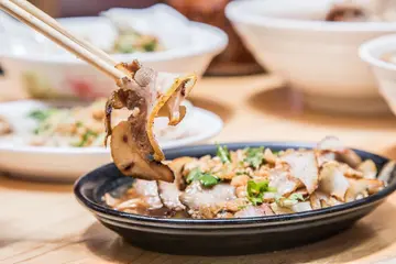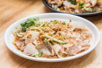 龍岡米干推薦這家國旗屋米干店,說到龍岡米干,不得不提到國旗屋這間堪稱傳奇的店,國旗屋屋主張老旺爺爺,是滇緬游擊隊的孤軍後裔,25年前為宣揚愛國家、敬國旗理念,在自家的米干店佈置了許多國旗,因為國旗數量實在驚人,張老旺的米干店也成為聞名國際的國旗屋景點,而道地的雲南米干的好味道也深深擄獲許多饕客的心國旗屋|交通方式&停車資訊國旗屋米干米線就在中壢龍岡忠貞市場旁邊,這裡應該算是滇緬料理的大本營(掐指一算搞不好有上百間米干店),對面就有一個收費停車場,但假日應該是很難等到車位,國旗屋米干米線的辨識度相當高,滿天飄揚的國旗看不到我也覺得很奇怪,之前來只是小招牌,現在招牌變很大,對面也租下來變成用餐區域國旗屋米干店|用餐環境走進國旗屋,老闆娘親切的招呼著,不過沒看到張老旺爺爺,國旗屋雖然環境簡陋,但整理來說還算相當乾淨,也不見蒼蠅,店內也是一幅旗海飄揚的景致,張老旺爺爺真的是超愛國的,牆上也有許多名人造訪的照片國旗屋|菜單&價目表國旗屋米干米線的菜單,價位親民可愛,看網友推薦大薄片跟火燒也是必點,有提供小份的還挺不錯,像只有我跟151兩個人點小的也不怕吃不完浪費料理都是現點現做,看我們在拍照阿姨也很親切的回應著,隨著阿姨煮米干,空氣中也彌漫著米干湯頭的味道國旗屋|必吃料理綜合米干,超大碗超值!配料也不少,有豬肝、肉片跟一顆半熟蛋,湯頭相當不錯,不會很油膩,味道也濃郁,喝起來很順口片狀的豬肝,吃起來軟嫩不老,豬肉片應該是用里肌部位,口感也是嫩嫩滑滑的,搭配甘美的湯頭好吃!愛吃辣朋友可以加點辣油,這裡的辣油比較著重香氣,辣度還好,加在湯頭裡味道更有深度,除非你完全不吃辣,強烈建議要加點辣更好吃!吃到一半再把半熟蛋液混著米干一起吃,蛋香搭配軟滑的米干,享受呀!豌豆粉,豌豆粉也是雲南獨有的小菜,是用豌豆曬乾後,磨成粉煮成漿,再冷卻成凍,再淋上酸甜雲式醬汁,豌豆粉吃起來Q軟豆香十足,加上雲式酸甜醬汁、增加香氣及口感的花生碎,酸甜爽口相當開胃大薄片,國旗屋的大薄片超有誠意,這樣是小份的量唷,大薄片是雲南菜的代表作,用片刀將豬頭肉帶皮薄薄的片下來,肉片吃來帶有Q脆的口感,加上酸辣鹹香的特調醬料,越吃越上癮!火燒涼拌,火燒涼拌也算是國旗屋的招牌菜了,據說是張老旺爺爺帶著柴火及器具到野外空地生火烤肉,整顆豬頭川燙後,以猛烈大火烤到表面乾黑,再用刀細心刮淨焦黑處,切片再與特製的雲式佐料涼伴,仔細聞可以聞到一股燒烤的香氣在米干店林立的忠貞市場,國旗屋或許不是大家都認同好吃的店,但咬咬&151覺得國旗屋應該算是很有人情味的店,老闆娘跟店員都很親切,而且如果湯喝不夠還可以再加,感覺還挺窩心的,下回有機會再訪吃吃米線吧…Read More