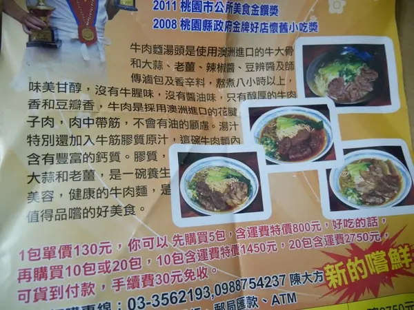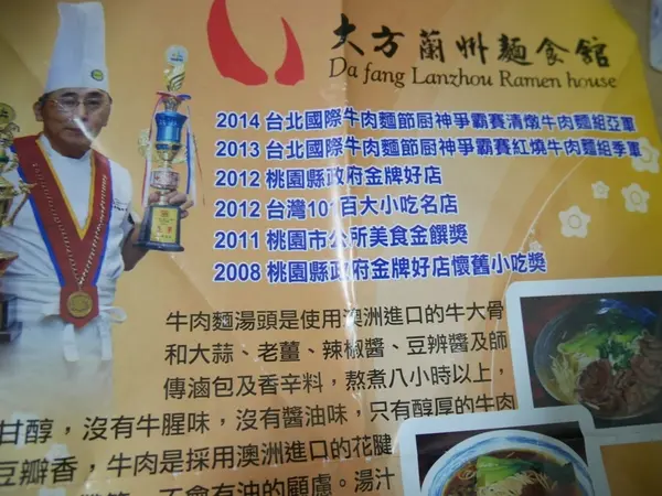 這次要介紹 小亞心目中桃園市最好吃的牛肉麵!!!雖然小亞不敢說 吃遍了全桃園市的牛肉麵但大方蘭州麵食館的牛肉麵一定是數一數二的連網友都曾這樣評價:大方蘭州麵食館是桃園最好吃的牛肉麵店!!來看看這家牛肉麵到底厲害在哪裡吧~==============================▼ 小亞介紹的是位於永安路上的大方蘭州麵食館另外 在大業路上業有一家喔: 桃園市桃園區大業路一段414號沒去吃過大業路的 不過既然是連鎖的 應該都一樣好吃吧??▼ 店面很簡單 就像一般的小吃店一樣店內位子不多 外面還有幾桌~~▼ 每次來都覺得這個削麵機器人好可愛長的有點像鹹蛋超人XD▼店內環境照 基本上很整潔乾淨我們是下午3點才來 所以位子很多不然平常用餐時段可是一位難求阿▼因為是小吃店 所以有時候要和人同桌用餐▼牆上有許多獎牌 證明大方蘭州拉麵是真的不錯優~~▼ 滷味也很好吃 可惜玻璃太霧了啦 拍不清楚▼牛肉麵的品像很多 另外麵條也分成三種拉麵、刀削和......冬粉??(因為沒點過 所以不知道)這次 老姚點了蘭州牛肉拉麵 $130小亞則是點山西刀削牛肉麵 $130才百元多的牛肉麵!! 而且分量大又好吃 不推不行啦!!另外還點了一份燙青菜和一些滷味▼ 點了餐後 會拿到號碼牌人多的時候 阿姨送餐時會叫號另外結帳時也要拿號碼牌去喔~~▼燙青菜和一些滷味因為這次是下午來用餐 怕吃太飽晚餐吃不下要不然小亞好喜歡吃他們家的滷味喔 (好想多點一點)▼ 蘭州牛肉拉麵 $130▼真的好大碗 湯汁很夠味 袋有一點小辣 裡面還有酸菜牛肉超級嫩!! 但又不會太軟 一樣是有嚼勁▼老姚喜歡吃細拉麵~~▼ 山西刀削牛肉麵 $130▼ 小亞則比較喜歡吃寬一些、有嚼勁的刀削麵麵條真的好好吃喔~~原本不想吃太多的 卻還是忍不住一條接一條最後還是把整碗麵殲滅了 T T (肥.....)▼ 不過這麼好吃又平價的牛肉麵不吃完太對不起老闆了~~哈哈…查看更多