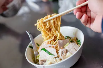 位於大溪老城區裡開業超過一甲子的麵店《姑姑麵店》,是許多大溪在地人從小吃到的的味道,就路旁的一間民宅小店卻是很切地氣的銅板美食,《姑姑麵店》也是大溪老街附近兩家推薦麵店之一,另外一家是達摩麵店,雖然《姑姑麵店》評論比較少,但評分是比較高一些,很多人說味道蠻傳統的,但也有人說排隊動線比較不明確。|經營一甲子的大溪美食姑姑麵店《姑姑麵店》位於大溪中正路上面,算是在大溪老城區裡,位於大溪和平路老街跟中山路老街的中間,開車來的朋友可以停在大溪國小地下停車場再走過來,《姑姑麵店》對面就是賴媽媽豆花中正路分店,再過去一點點就是老阿伯現滷豆干。《姑姑麵店》營業時間是從早上7點一路賣到下午2點,所以下午才來大溪老街的可能就吃不到,用餐環境就旁邊騎樓,桌子不多,但來的客人總是能跟店員阿姨來上幾句,也蠻多在地人會來外帶,假日來的話可能要留意一下,中午時間可能會排隊,阿姨人蠻親切的一直跟我們說辣椒是自己炒的,叫我們一定要試試看。姑姑麵店菜單價格姑姑麵店菜單就賣招牌跟傳統兩種不一樣的麵,主要差別傳統裡面是放肉片,然後招牌裡面是有肉片、餛飩與貢丸,然後你可以選擇要乾的還是湯的,跟選擇麵條是要油麵、白麵、意麵、粄條、米粉或冬粉,最後就是一些湯品跟小菜,就蠻簡單的傳統味道。招牌油麵 NT$65元《姑姑麵店》招牌麵就是有豬肉片、餛飩與貢丸,一碗看起來的份量還蠻多的,餛飩是桃園這邊比較常見的用溫體黑豬去包的念餡,皮會比較薄一些很容易就破掉,但內餡紮實的像是肉丸一般,,,,,,,,,,,,,,,。《姑姑麵店》的麵最厲害不是配料,而是其油蔥醬,要吃的時候一定要拌勻,豬油的香氣真的很足,麵吃起來很順雖然帶有一點油感但不會讓人覺得很油膩,加了辣椒醬之後,又是另一種不同的風景。肝連湯 NT$60元帶有薑味的肝連湯湯頭還蠻溫醇的,不像是煮麵湯那麼簡單,肝連吃起來也蠻新鮮的,只是份量偏少一些些。,滷大腸 NT$60元/海帶 NT$30元/燙青菜 NT$40元滷大腸處理得還不錯,吃起來不會讓人覺得有腥味,微微的油感跟鹹度讓整個大腸入口之後意猶未盡,海帶也還行,帶有一點脆度,燙青菜一樣是有淋上油蔥醬,真的很香。《姑姑麵店》算是那種會讓人從小吃到大的味道,雖然不是那麼特別,但就是那種簡單會讓人懷念,主要是那個油蔥下得很夠,豬油的香氣讓麵吃起來很舒服又不會覺得膩,然後《姑姑麵店》小菜就跟一般巷口麵店差不多,但老實說也蠻新鮮的,如果來大溪老街不知道吃什麼美食,《姑姑麵店》可以參考看看。…Read More