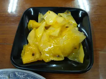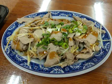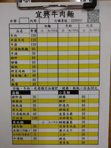 在聞香坊牛肉麵食記裡,有板友提及宜興牛肉麵,趁著到龜山的機會前來一探。 店家雖名「牛肉麵」,但販售的麵食種類不少,小菜也有諸多選擇。抄得豬肝麵、牛湯餛飩、牛肉麵和滷肉飯推薦,戰力有限,斟酌點選。調味檯上有酸菜、甜辣醬和油潑辣子。酸菜重辣,鹹香一般;油潑辣子辣度有,香氣尚可。半筋半肉白麵 120元 滷肉飯 35元(忘了拍整碗麵 Orz) 白麵條咬勁普通,牛肉湯溫和,似帶點藥膳的甘。牛筋偏硬走嚼勁路線,腱子肉軟然而稱不上嫩。 滷肉飯用的是瘦絞肉,豬油香較缺,醬汁雖淡但不至無味,整體走清爽路線。配菜有大陸妹和榨菜,榨菜挺下飯。豬肝 60元 百香青木瓜 30元 蜜汁豆干 60元 因豬肝麵有推薦而點了豬肝切盤,熟度得宜不老硬,只是略帶內臟腥味。 百香青木瓜酸甜爽脆,開胃消暑。 蜜汁豆干口感紮實,滋味偏甜。 餐畢離開時發現鄰近除之前提到的聞香坊外,還有間拉麵店,當真麵食類一級戰區,就不知哪家生意最好。…查看更多