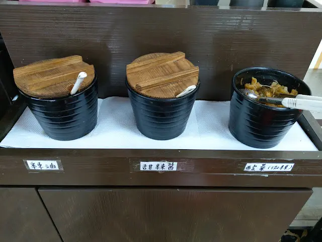 在聞香坊牛肉麵食記裡,有板友提及宜興牛肉麵,趁著到龜山的機會前來一探。 店家雖名「牛肉麵」,但販售的麵食種類不少,小菜也有諸多選擇。抄得豬肝麵、牛湯餛飩、牛肉麵和滷肉飯推薦,戰力有限,斟酌點選。調味檯上有酸菜、甜辣醬和油潑辣子。酸菜重辣,鹹香一般;油潑辣子辣度有,香氣尚可。半筋半肉白麵 120元 滷肉飯 35元(忘了拍整碗麵 Orz) 白麵條咬勁普通,牛肉湯溫和,似帶點藥膳的甘。牛筋偏硬走嚼勁路線,腱子肉軟然而稱不上嫩。 滷肉飯用的是瘦絞肉,豬油香較缺,醬汁雖淡但不至無味,整體走清爽路線。配菜有大陸妹和榨菜,榨菜挺下飯。豬肝 60元 百香青木瓜 30元 蜜汁豆干 60元 因豬肝麵有推薦而點了豬肝切盤,熟度得宜不老硬,只是略帶內臟腥味。 百香青木瓜酸甜爽脆,開胃消暑。 蜜汁豆干口感紮實,滋味偏甜。 餐畢離開時發現鄰近除之前提到的聞香坊外,還有間拉麵店,當真麵食類一級戰區,就不知哪家生意最好。…查看更多