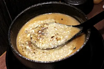 運用1300度放射火焰,迅速將湯汁乳化融合,產生獨特味道,香醇濃郁。 請一定要品嚐,炎神拉麵獨特的滑順與濃厚的口感。