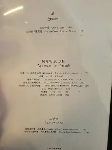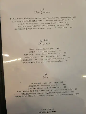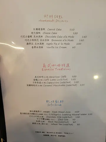 最初是因為與蘆竹在地友人聚餐而得知這家店,後來又在電視上看到介紹,才知道是家在地老字號西餐廳。想重訪時店家剛好重新裝修,於是拖上好一段時日。    餐點以飯、義大利麵及特色料理為主,輔以開胃菜、飲品及甜點。基輔炸雞似乎是店家招牌,幾乎每桌必點。凱薩沙拉及煙燻培根 200元    凱薩沙拉內容物以萵苣為主,搭配麵包丁、牛番茄及煙燻培根。醬汁為鯷魚油醋醬,鹹酸適中。海膽醬義大利麵 400元    義大利麵麵條頗有咬勁,海膽醬濃郁迷人,個人挺愛這道料理。配料有兩大顆新鮮干貝、幾許蘆筍和葡萄乾。基輔炸雞及洋芋泥 420元    基輔炸雞有點吃不懂。炸雞麵衣酥脆,但內裡雞肉有點乾澀,需靠切開後迸出的香草大蒜奶油醬汁去溼潤和提味。只是炸物又加奶油,吃來油膩感更增。莎莎醬酸辣,搭配時會完全掩去食材滋味。一旁的洋芋泥綿密細緻夠味,反而是盤內的救贖。    主餐類會附飲品,為紅茶及麥茶二擇一。紅茶甜度溫和順口,麥茶無糖味稍淡。紅蘿蔔蛋糕 110元    紅蘿蔔蛋糕表面抹上起司,底下則是紮實甜香的紅蘿蔔蛋糕。紅蘿蔔味不明顯,怕紅蘿蔔者應可一試。蛋糕底部烤得偏焦,吃來焦苦及焦香均具。起司蛋糕 120元    起司蛋糕感覺得重乳酪路線,濃郁微帶酸,餅乾底口感偏溼軟。    以個人喜好而言,海膽醬義大利麵頗為推薦,而每桌必備的基輔炸雞則不能理解。有機會想試試西班牙海鮮燉飯及燉羊膝。查看更多