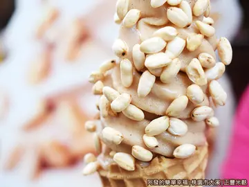 阿發喜歡吃霜淇淋,即便秋冬天冷時節,有時還是會想來一支解解饞。最近造訪大溪老街,我們逛了以往較沒逛到的區域,當然又發現了好幾間的在地美食店家,但最讓阿發出乎意料外與喜愛的,是這〝米麩口味的爆米香霜淇淋〞... ▲正豐米麩和平店,店前人潮店家位於大溪老街商圈的和平路的路頭段,以往我們因為所習慣逛的行進動線關係,即便每年都會來到大溪老街1~2回,但好像也沒逛到這來過。此次是老婆聊到:「大溪好像有很特別的爆米香霜淇淋...」我上網搜尋後才知,原來是在這。走到店家門前,就看到購買的排隊人潮~ ▲店外觀已經營40多年歲月的「正豐米麩」,本店在附近的中正路上,是間傳統的老字號米麩專賣店,除了米麩外,還販售杏仁粉、亞麻仁粉、芝麻粉、紫米粉、米香...等,但只有在和平店有賣〝爆米香霜淇淋〞,且是一年四季都有賣~ ▲很眼熟、似曾相似的機器看到店內這台機器,我一時以為是古早的〝爆米香〞機,但店家說這爐子比較小,爆米香的爐子大很多,這裡(和平店)不方便〝爆米香〞,主要負責烤穀物,〝爆米香〞的機器在老店那爆。 ▲烤黃豆,出爐囉 ▲霜淇淋製作霜淇淋機上,貼了知名美食節目來訪的照片。而這霜淇淋在製作時,外觀看起來感覺和一般一樣,但顏色又感覺有點不一樣~ ▲哇!霜淇淋上竟開始灑上〝爆米香〞 ▲爆米香霜淇淋到手好特別的霜淇淋 ▲爆米香霜淇淋不小一支 ▲霜淇淋上有許多的爆米香粒 ▲〝爆米香霜淇淋〞特寫飄溢著淡淡的〝爆米香〞香~ ▲吃上一口感覺兒子很享受! ▲霜淇淋竟是米麩口味,既傳統又創新獨特 ▲留影米麩在台灣早期因物資匱乏,而把米的麩皮(米糠)加工製作,是可拿來驅寒與填飽肚子的食物外,更是當時不少幼童的副食品,相信它是許多如今的中、老年人們,所懷念的幼時滋味吧! 由於米麩富含維生素、礦物質與膳食纖維...等,近年來也有不少食品營養專家推薦,說它是很好的全穀類食材,因此又衍生製作成更多樣性的食品。 但我們這可是第一次吃到,不僅霜淇淋是〝米麩〞口味,而且還在上面灑了〝爆米香〞!滋味口感上,霜淇淋有著自然的米糠味,與甜而不膩的滑綿感,加上爆米香的香氣與酥脆,真是給予了傳統古早味的創意新生命,樸實自然又超好吃。一支只售35元,CP值也很高,來到大溪老街可別錯過囉~ …查看更多