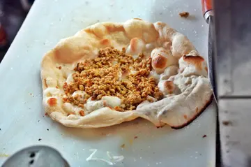 誰說來龍岡早餐只有吃米干,哪哪麻今天就介紹一家不是米干也不是蛋餅的早餐。大家來到龍岡忠貞市場這邊,第一個想到的早餐是米干,尤其那家排隊排到天荒地老的大鬍子米干對吧?還有路口那家包入整隻蝦子的蒸品湯包,其實市場內還有一家頗受歡迎的回民料理,只開到下午一點就打烊了,早上可以來逛個市場然後吃個早午餐再回家吧!簡單的店面,就在我們上次拍影片出現的那間雜貨店隔壁,上次來的時候他沒開,今天竟然被我遇到了,真的超幸運的,就趕緊來吃。老闆是回教徒,店內很多我們看不懂的文字,而且不可以帶酒和豬肉類製品,如果有去市場買豬肉或香腸的話,就外帶或是吃了再買吧!我一直以來就很喜歡吃麵粉類的食物(所以一直胖?),不過我喜歡簡單沒有太多料和調味的食物,印度烤餅沒有做過多的調味就單純的烤麵餅,當然也是我喜歡的美食之一,只是如果去印度餐廳吃會比較貴一點,在清真園最貴一份烤餅也只要105元而已,當然要點個幾份來吃吃。跟老闆點好之後,老闆就會開始甩餅烤餅,真的就是現點現做,而且動作熟練又很快。很特別的是他把麵團鋪開後,攤在一個蘑菇狀的石頭上,再用力黏到烤爐壁上,只要開始做烤餅就會引來路人圍觀,看著看著也忍不住買一個了。我另外又點了稀豆粉加紹子雞和印度奶茶,我們來的時候剛好是空檔,老闆很快把餐點送上桌給我們。我本來點甜的奶油烤餅和原味烤餅,點的時候看到菜單上有一整套的咖哩沾餅,就改成點沾餅了。不過我後來覺得既然有點稀豆粉加紹子雞,其實點個原味烤餅沾稀豆粉就好,我們這樣有點太多。吃法是可以撕下一點原味烤餅,沾咖哩醬或把咖哩雞包進烤餅裡面吃,自從上次吃過莎堤亞印度料理之後,覺得用手拿食物似乎也不是那麼不能接受。原味烤餅如果單吃,在嘴裡嚼著會有很濃郁的麵香,剛上桌時熱呼呼,背面還有點酥脆口感,我也蠻喜歡單獨吃的。而咖哩的部份和印度咖哩又有點不一樣,他是屬於回民料理,咖哩比較沒那麼濃稠,和台灣許多改成比較貼近台灣口味的印度料理不同,比較原汁原味香料味也比較重一點,不一定每個人都吃的習慣。而稀豆粉加紹子雞,我覺得比原味的稀豆粉更有味道比較香,又吃的到雞肉。據說紹子就是把不同材料切碎碎的下去拌炒,大部分看到的做法都比較類似台灣的肉燥,不過就跟米干一樣各家做法不同,清真園的還有加入土雞肉去做,添加在味道比較淡的稀豆粉裡面挺好吃的。因為有點烤餅,我就沒有另外再加米干。如果敢吃辣的話,也可以加一點店家的辣椒醬,我自己還蠻喜歡的。印度奶茶的話,茶味跟香料味比較重,喝起來味道蠻特別的,和我們上次喝到的印度奶茶味道也不同,看來每家店都有屬於自己的味道呢!本來奶油烤餅是Yelena指定要吃的,但是吃一吃又嫌太甜,我覺得還是要配奶茶會比較好吃。其實也可以點一份烤餅和一杯奶茶邊走邊吃當作早餐,我們在店裡的時候也有遇到穿著回教服飾的媽媽來用餐,看來這真的是龍岡當地很受歡迎的隱藏版店家呢!有機會來逛龍岡市場,不妨就到裡面來吃吃傳統回族料理吧!查看更多