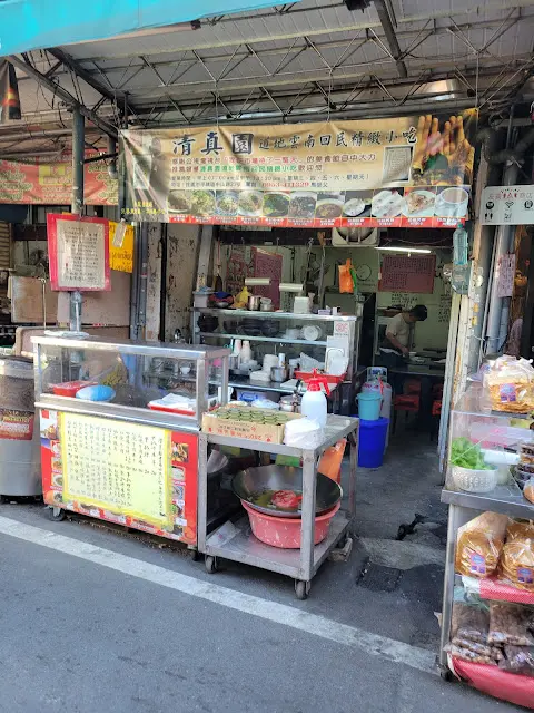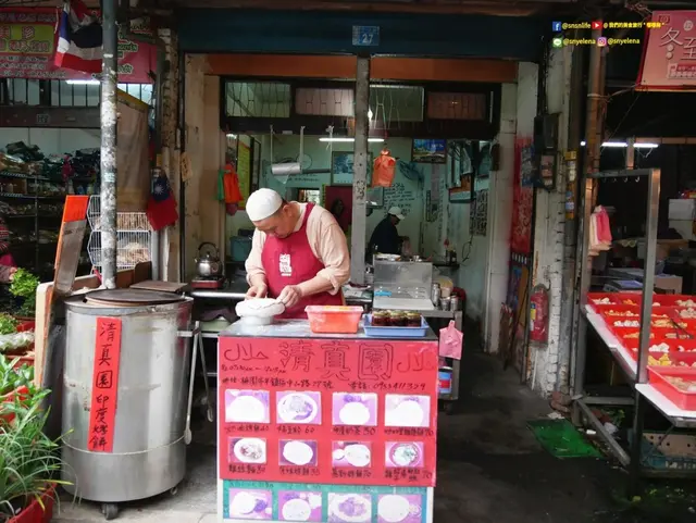 有板友推薦了許多忠貞一帶的美食,清真園便是其中一處,然而營業時間卻讓人摸不著頭緒。google顯示與網路食記介紹的營業時間有別,自己陸續拜訪了幾次也撲空。這天假日前來,總算見到店家開張。 餐點品項樣樣讓人好奇,最常見到奶油烤餅和稀豆粉推薦,初訪便先試這幾款。奶油甜烤餅 60元 奶油烤餅請務必點,連不嗜甜的我都覺得好吃,而且請趁熱吃。初上桌的烤餅帶點脆度,奶油香迷人,灑上的糖粒不會讓餅變得太甜,反而多了吃到糖粒的微脆感。咖哩捲餅 90元 咖哩捲餅相對一般。或因包餡的關係,餅身脆度不如奶油甜烤餅,內餡為生菜絲與咖哩肉末。肉末稍乾,咖哩味溫和。稀豆粉 70元 稀豆粉據說假日才提供,不確定真假。稀豆粉是自己初次品嚐,查詢了一下,原來是豌豆磨成漿後煮製而成。 整體挺有特色,質地十分濃稠,帶點鹹味,吃起來很像有些煮得很黏稠的玉米濃湯(非貶意)。調味檯上有油潑辣子,能吃辣的不妨試試,能讓滋味更豐富些,只是辣度不低。 餐間老闆還給了小碟泡菜,爽脆有酸勁。 初訪印象不差,本來打算回訪嚐試牛扒烀,結果連訪兩星期都遇撲空。明明問過店家僅休一五,只好哀怨自己的店休命格,放棄再訪。 整體而言,這裡的料理有特色,內用環境較不理想,夏天會有些悶熱。最推薦奶油甜烤餅,然而是否營業得碰碰運氣。…查看更多