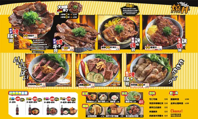 這天剛好有事和老大到大江一帶,中午乾脆在這裡解決。平日正午美食街竟也滿是客潮,大江的生意量著實不容小覷。 簡單繞過後,決定試試好奇以久的燒丼。點了一碗牛野郎丼,再追加期間限定的牛舌丼。 牛野郎丼套餐 280元 厚切牛舌丼套餐 380元 丼飯本來就附湯,套餐則多了配菜和飲料。配菜選梅子泡菜和泡菜組合。梅子泡菜的梅子味不算明顯,簡單說就是類似台式泡菜的甜酸帶脆路線。泡菜組合為醃泡菜加醃蘿蔔,偏重口味鹹辣風。 丼飯以價格來說有點小碗,大食量者應該吃不飽。 牛野郎丼照片和賣相看起來都很誘人,可惜牛肉片油脂不豐外,還烤得過乾柴,這算是丼飯肉片少見的表現。醬汁鹹甜皆重,清淡口味人士請小心。 厚切牛舌約有五大塊,旁邊還有一些零碎款。牛舌肥厚且嚼勁十足,個人很喜歡,老大則覺得嚼勁過了頭。牛舌吸附醬汁,搭配上頭的鹽蔥及白飯一併入口,挺是過癮。 味噌湯偏稀,湯料為些許小豆腐丁。 套餐飲料皆為罐裝飲料,不贅述。 整體而言,丼飯滋味不如照片美好,醬料偏重有些人應該無法接受。據說雞腿丼和燒豬丼表現較亮眼,有待你親自探險。…查看更多