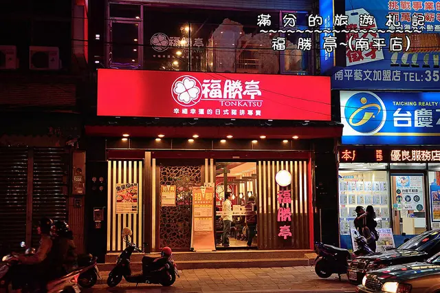 「福勝亭日式豬排」餐廳源自於日本,美味的炸豬排為專賣項目以幸運草為餐廳的主要標識,推出幸福幸運的人氣定食 近年來在台灣北中南都看得到福勝亭的招牌 桃園南平路上美食餐廳超級多,其中一間就是『福勝亭』 晚餐吃什麼呢?今日Kevin帶滿分來到桃園熱鬧的南平路上用餐 桃園的這條路上,店家超豐富,各式異國餐廳、美味小食、居家便利店、飲料店、甚至是購物商店都有呢 也由於南平路店家多,當然也非常受到歡迎啦 人潮、車潮都非常多,開車來往的朋友們在尖峰時刻,停車位真得不好找(附近有汽車、機車停車位)位於桃園藝文廣場地下室有提供停車場唷,每小時$30,來此用餐,這樣的停車費金額還算可以接受啦 福勝亭南平店就在藝文廣場的正對面,幸運草的紅色大招牌,其實還蠻明顯滴 福勝亭的外觀建築每一間門市都很類似,皆以日本和室風格設計 滿分於週末晚上7點左右抵達時,正是用餐時間,人潮還真多,客滿就需要候位稍等啦 入口處就是點餐區,先行點餐結帳後,服務人員才會協助帶位 菜單就陳列在櫃檯的正後方,MENU上的菜色都洋溢著幸福的美味呢 點餐方式就和『三商巧福』的點餐方式一樣唷,所以咱們也不會太陌生 一樓除了櫃檯和後面的廚房區域,用餐空間還蠻寬敞,而且每個座位區下還可以放置物品唷 當日由於一樓整個大客滿,所以點餐完後,咱們就被安排往兩樓的位子用餐 走上樓梯來到二樓,滿分覺得二樓的坐位比較舒適耶(是沙發坐位唷) 活動空間感覺也比一樓大得多,而且與鄰近的人客也有適當的距離,不會都擠在一起用餐,更輕鬆自在 別忘了把結帳後的菜單放在桌面上唷 桌上陳列了豬排醬、和風沙拉醬和紙巾,桌卡上有福勝亭的用餐折扣優惠,需要的朋友們可以參考唷飲料$25 (無限續杯) 天氣太冷,滿分們本想說吃定食就好,可是看到無限續杯的飲料只要25元,覺得不買一杯有點可惜,還是抵擋不住… 福勝亭採半自助的用餐模式,白飯、湯品、飲料皆需自行續加唷 愛吃白米飯及喝飲料的朋友們最適合這樣的用餐方式啦鹽烤鯖魚定食 $220 終於上餐啦,上桌時,滿分就聞到鹽烤的香味,口水都快流出來囉 每一個定食都有主餐、白飯、高麗菜絲、漬物小菜、湯品和甜點 坦白說,滿分每次來大多都是點人氣炸豬排,今日換個口味,感覺還不錯唷白飯 福勝亭的白米飯還有加入海苔香鬆及芝麻,和白飯一起吃,咀嚼時多了一味更好食唷 自助區除了可以續加白飯之外,連香鬆都可以再加唷 Kevin喜歡重口味的,覺得吃不夠,又再去加一些,多了些配料,看起就更美味了漬物小菜 福勝亭的漬物小菜大多都涼拌重口味,很適合當開胃菜,當然也很下飯唷味噌湯 味噌湯滿分很喜歡,好喝、順口、餡料也多,而且喝不夠的還可以自己再去裝一碗呢 鹽烤靖魚旁有附上檸檬片、甜薑和胡椒粉 擠上一點點的檸檬汁在魚片上,靖魚外皮光亮更可口 滿分用筷子夾開,魚肉微酸重鹹好好吃唷,肉質很新鮮,沒有腥味 再沾點胡椒粉更有味道唷, 而且滿分發現靖魚應該有處理過 沒有什麼魚刺,大多都是大頭刺,很好挑;而甜薑搭配魚片或白飯也都很好吃唷新登場:德式香腸豬排捲 $180 滿分的上餐後,接著Kevin的餐點也上桌囉,咱們的餐點最大的差別,就是主餐不同啦 (廢話…) 不過特別的事,德式香腸豬排捲,可是福勝亭近期才剛上市滴,沒有很多人吃過唷(整個得意了…) 德式香腸豬排捲,顧名思義就是豬排裡面放了德式香腸啦 豬排卷斜切面,看得到裡面的德式香腸,看起來就好好吃唷 不過咬的時候請注意,有可能一咬,德式香腸就飛出去啦 滿分和Kevin一人各掉一次,好像這條香腸不是很想被夾在豬排裡面耶 豬排和德式香腸一起入口,味道很香很美味,不過德式香腸的味道遠大過豬排囉 坦白說,一起吃,會覺得是在吃酥炸過的德式香腸唷, 倒是吃不出豬排的香味 不過因為有飛出去的德式香腸,所以我們只能單獨吃豬排捲,就可以品嚐到豬排的好味道啦 另外,滿分覺得豬排捲可先吃原味品噹,再搭配豬排醬調味,兩者都不錯吃,朋友們可以試試看唷滿分覺得日式炸豬排餐廳的所提供的小菜真的不多所以高麗菜絲就變得非常重要,門市特製的和風沙拉醬和高麗菜絲也成為來品嚐豬排的主食之一 清爽的高麗菜絲,單獨吃,很像飯前沙拉,和炸豬排一起品嚐,清爽少了油膩感,最後小菜不夠吃了 可再請服務人員續加高麗菜絲,淋上和風沙拉醬,又一盤小菜上桌囉和風豆腐$40 滿分怕Kevin吃不夠,還加點小菜給他吃(其實是滿分想吃啦…) 酥炸的和風豆腐,金黃色外皮,看起來就很可口,但量不多 豆腐切小塊油炸,近看好像小雞塊 品嚐時,可以搭配附贈的和風醬汁,很對味 外皮酥脆好吃,裡面的白豆腐超滑嫩,滿分和Kevin都很喜歡唷甜點 其實吃下一個定食,滿分就覺得肚子飽的差不多了 今日的飯後甜點是巧克力奶酪,可能是滿分已經太飽了 品嚐時並沒有很喜歡,倒是Kevin吃得挺開心滴 但如果有飯後水果或冰淇淋,滿分應該就不會拒絕啦 福勝亭(南平店)整體用餐的感覺還不錯,吃得很飽,白飯、湯品、飲品、皆可再續唷,相信是不少朋友們熱愛滴鹽烤靖魚滿分超愛,沒想到第一次不是點豬排定食就留下這麼好的印象,看來滿分以後點餐時又要傷腦筋了 Kevin點的德式香腸,滿分覺得味道還不錯,只是有點喧賓奪主,吃得時候還要擔心香腸可能會飛出去的狀況 小菜炸豆腐,滿分也很喜歡,只是量真得不多啦! 餐點現點現作,人潮多時,等