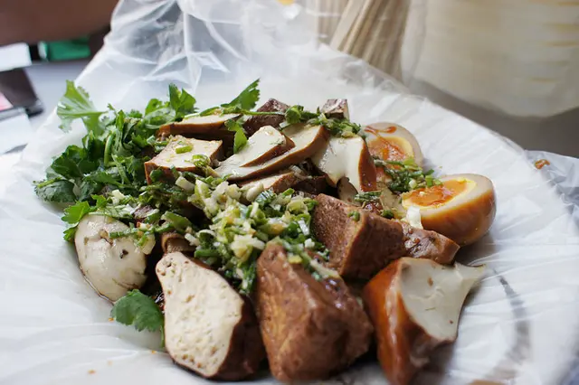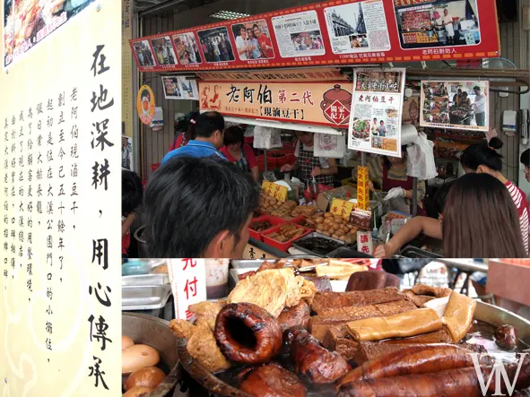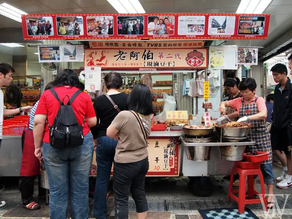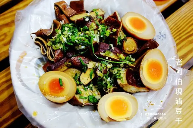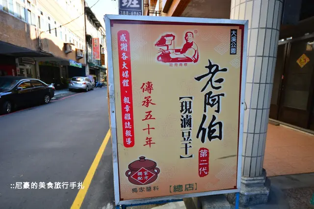《老阿伯現滷豆干》是大溪老街賣豆干評價最多的一間店,在網路上有超過7000則評價,也是蠻多人排隊的人氣大溪老街美食,不論平假日都是滿滿的人,來大溪老街遊玩的觀光客都會來《老阿伯現滷豆干》,開店到現在已經有超過50年歷史的《老阿伯現滷豆干》生意真的很好,網友大多建議第一次來直接點老阿伯菜單上的全套或招牌最省事。|網評超過7000則50年老店老阿伯現滷豆干《老阿伯現滷豆干》最早最早之前是老阿伯在中正公園的門口擺攤,從民國55年做到現在已經超過50年歷史,《老阿伯現滷豆干》可是當地大溪老店,後來才搬到大溪老街這邊的店面,附近停車場有大溪小學地下停車場與大溪老街戶外停車場,只是假日人多都要停比較遠一些,現在《老阿伯現滷豆干》大溪老街店面是位在騎樓下,座位區是半露天室的,不管是平日還是假日都有排隊人潮。《老阿伯現滷豆干》攤位前的滷鍋裡面堆滿了各式的豆製品,要吃什麼直接跟阿姨點就行了,阿姨會將你點的豆乾直接夾到旁邊讓另一個工作人員分切,《老阿伯現滷豆干》排隊的人雖然多,但其實消化的速度蠻快的,從排隊到拿到滷豆乾大概只花了十分鐘左右,《老阿伯現滷豆干》生意好到會開發票喔!但不知道有沒有宅配。老阿伯菜單價格老阿伯菜單就是賣五種豆製類的滷味,有豆干、素雞、素腸、素肚與百頁豆腐,另外還有黃金蛋跟海帶可以點,當天去的時候素腸是缺貨中,第一次來的可以參考老阿伯菜單上的全套餐跟招牌餐,全套餐基本上就是全部都有的綜合餐,適合5~6人吃,招牌餐就是少了黃金蛋跟海帶的綜合餐,適合2-3人吃。綜合桶 NT$145元 + 黃金蛋(2顆) NT$45元《老阿伯現滷豆干》招牌餐大約是2~3人左右的份量,裡面的切的東西就是一種綜合概念,有豆干、素雞、素腸、素肚與百頁豆腐,有再加點黃金蛋,朋友是說黃金蛋最好吃,但今天切出來感覺品質不是很穩定,有一點過熟,反而吃起來就還好,但醬料真的很強,辣的醬料夠鹹辣,吃起來相當過癮,也真的很嗆,不管是沾什麼都百搭,超棒的!《老阿伯現滷豆干》豆干雖然是招牌,但不是那種滷得很重口味的,就很淡很淡到完全沒鹹度的感覺,反而是沾醬之後比較好吃;素腸和素肚口感上還滿討喜的,尤其是素腸吃起來軟Q,味道上還蠻香的,可是就是滷的味道沒有進去,一定要沾辣椒醬,吃起來更爽更香一些。青草茶 NT$35元青草茶應該是《老阿伯現滷豆干》店裡面去批來賣的,原則上辣椒真很辣,一不小心就會被辣到,所以一開始想說不要買飲料,結果辣到受不了還是買了,青草茶寫說用了蠻多種中藥的,但喝起來甘草的味道還蠻重的,就入喉之後有回甘的涼感,不是那麼喜歡,有開發票給讚啦!《老阿伯現滷豆干》真的是大溪在地超有名的豆干店,以前是在地人吃,現在是觀光客吃,但人還是很多,來幾乎都是要排隊,還有多家媒體採訪過,但是哥覺得《老阿伯現滷豆干》最強的竟然不是豆干,是它們家的辣椒醬,真的很夠味也很來勁,幾乎不管沾什麼都好吃,反正來大溪老街不知道吃什麼,可以來試試《老阿伯現滷豆干》。…Read More