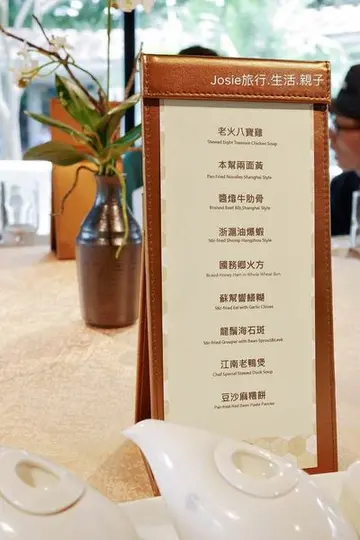 這幾年,帶著Abbie妞兒玩了幾趟的小人國,一直以為【蔣府宴】是附屬在小人國樂園內的餐廳,經過這次用餐體驗之後,才發現自己真是大錯特錯啦~首先,想在【蔣府宴】享用美饌,是不需要購買小人國門票進入的。(Josie一直誤以為餐廳在園區內啊…)再來,它並不是大家想像中樂園內的餐廳,不是只為了讓遊客填飽肚子而設立的,它可是間氣氛好、環境佳,可以出大菜,餐點在水準以上,適合家族、公司行號聚餐的餐廳喔!!【蔣府宴】位在小人國旁,車子可停在小人國的付費停車場 (100元/次),餐廳內消費可折抵停車費,車子停好後,一路上都有指標,只要跟著指標走,很容易就可到達餐廳了。▲ 餐廳門口有專人帶位▲ 今日菜單江南老鴨煲 (需三天前預約)湯頭是這道料理的重頭戲,以豬大骨、金華火腿等食材小火燉煮數十個小時而成,再放入全鴨繼續熬煮3小時,才得以呈現如此醇厚香濃的雪白濃湯,湯頭有著一股淡淡煙燻的獨特風味,值得細細品嚐~江南老鴨煲一上桌,可先品嚐雪白湯頭及鴨肉的好味道,隨後服務生會將整鍋煲湯端回廚房,再由廚師加入烏龍麵及其它食材,即成了火鍋煲,這時候的湯頭風味和原湯不太一樣,彷彿又是另一道全新料理般,一鍋二吃不但可以很飽足,也非常美味呢!鴨肉燉煮軟爛,非常好入口。再次上桌的火鍋煲,加入了不少食材,別有一番風味。醬㸆牛助骨 (需三天前預約)整支帶骨的牛肋骨料理一上桌,相當霸氣而且吸睛。以江浙料理的獨特作法,將自製醬汁藉由控制得宜的火候完全㸆入牛肉的肌理之中,鹹中帶甜的醬汁更能帶出牛肉的香氣。主廚將牛肋骨的部分,肉骨分離並切割成塊,讓賓客們容易享用。搭配香煎至金黃酥脆的大蒜片和色彩鮮艷的青紅椒,美味之餘,更是視覺上的一大饗宴。龍鬚海石斑 (需三天前預約)這是一道考驗主廚刀工的料理。除了整條魚去骨剌之外,還將魚肉切成細條狀魚柳,很費工耗時的功夫菜,是在外面一般餐廳未必吃得到的菜色!更棒的是,還提供一魚二吃的獨特吃法,魚頭、魚尾熬煮成鮮味十足的石斑魚粥,營養滿點!!魚柳以風味獨特的醬汁和韭黃、豆芽菜、辣椒絲一起拌炒,料理中的辣椒絲,有提味、增添菜色的效果,但完全不辣,是道老少咸宜的美味魚料理!石斑魚肉質鮮甜、緊實,是高蛋白、低脂肪、營養價值高的魚種喔!石斑魚上桌後,服務生隨即將魚頭、魚尾取走,讓主廚利用這二個部位熬粥。粥品米粒燉煮至糜爛,有著滿滿的魚骨膠原,鮮味十足,味道極棒!建議食用時,撒點餐廳自行炒製的100%天然胡椒鹽,更增添風味。因為是利用魚頭/尾部份熬煮而成,難免會有魚骨,食用時需要小心吞嚥。是非常推薦、必點的功夫菜呀!!!蘇幫響鱔糊 (需三天前預約)料理一上桌,服務生隨即淋上滾燙熱油,整盤鱔魚佳餚吱吱作響,非常有意思。搭配韭黃拌炒,不僅能去除鱔魚腥味,更能提升口感及點綴外觀色彩。鱔魚肉質非常軟嫩,而且沒有土味和腥味,處理得相當好,是一道營養價值高又美味的料理。本幫兩面黃 以慢火煎至二面呈現金黃色澤的麵體,外脆內軟,搭配以蔬食、肉絲、鮮蝦等食材炒製而成的醬汁一起享用,風味絕佳。浙滬油爆蝦以油爆的的作法使蝦殼變得酥脆可入口,蝦肉卻仍然保持鮮嫩美味,醬汁均勻沾裏在蝦子上,是道連殼帶肉可一起食用的蝦料理喔!不經意發現舖在底層的洋蔥絲,充滿了濃濃的鐵板焦香味(但洋蔥本身並沒有焦黑喔),連墊底的配菜也毫不遜色呢!查看更多