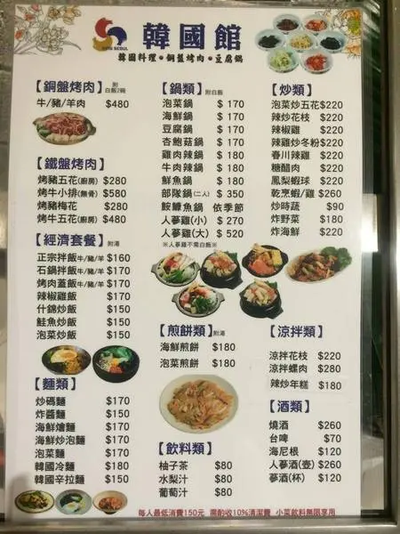 海鮮煎餅 180元 (我個人很推薦,真的很好吃 )現煎的外皮非常香酥脆 裡面有花枝及蝦仁 沾著醬汁好好吃喔份量上也很足夠 這道當然要趁熱享用才會好吃喔韓式炸雞(原味不沾醬 / 辣味沾紅醬 兩種) 260元 共6支(小雞腿 、雞翅各3支)8月新菜 醬汁有點像糖醋 辣味是後勁才會出現 基本上也很難形容 不過有對了我的胃這道也是要剛炸好趁熱吃才會好吃喔~ (冷掉的話,醬汁讓炸雞的口感就會比較油膩些....)第一次8月初吃的時候還不會很辣後來第二次再訪 後勁的辣有點強烈,感覺有調整過 因為沒在韓國吃過 ,所以也無從比較 ~ 但老闆及老闆娘好像是韓國來的樣子? :) 雞肉肉質鮮嫩不會柴,炸的技術很好,且有淡淡芝麻粒香 感覺每家店做法都不太一樣這家做法是炸好再沾紅醬 ,所以些微的酥脆口感還會在春川辣雞 220元 (別桌點的,所以口味無法形容但看起來感覺很不錯喔)肉好像選用雞胸肉的部位 (感覺肉質很嫩~)店員會先在旁邊拌炒的服務喔拌炒完 ,滿的好料讓整鍋的高麗菜看起來相當美味耶!!需付費韓國飲品(果汁 、酒)可樂 、雪碧...等無限暢飲(喝到飽XD)重點! 小菜吃到飽(而且也很好吃喔)泡菜 、甜不辣 、海帶 、苦瓜 、花椰菜 、豆干 、豆芽菜 、生菜沙拉 、茄子非常豐富~還有特別的黑豆 :) 小菜旁的熱蔬菜湯 也可以無限喝喔第2次再訪-我們點了銅盤烤肉及韓式炸雞 銅盤烤肉(牛/羊/豬 擇一) 480元 附飯兩碗 ,二人份因為是單點所以份量上較精緻 ,兩位男生可能會不太夠吃但肉的品質也比起吃到飽感覺比較新鮮衛生一點囉第二次換了擺盤方式,第二次吃的時候我個人覺得超辣!! 我比較喜歡第一次的辣度...基本上肉本身就有淹過醬汁,不沾也很好吃。但再沾一點點也很下飯喔~ 用餐桌椅&店家環境 餐桌非常寬敞喔~~ 座位很舒適環境空間都很大 金首爾韓國館也是在網路看過其他人分享才會知道他所以也會從中知道某些菜色要注意一下 ,評價比較普通但海鮮煎餅 、銅盤烤肉 、春川辣雞 、韓式炸雞這四道評價都算很好 另外菜單上的人參雞湯也讓我很有興趣 …查看更多