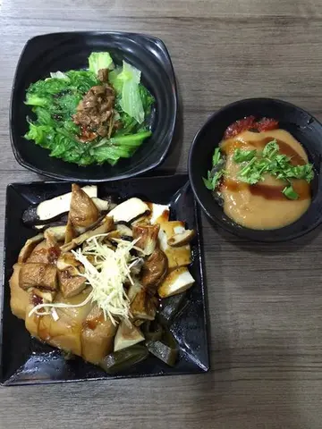小亞和老姚 很喜歡去大溪、三坑騎鐵馬很喜歡三坑那的草仔粿 大溪老街更是美食多到數不完不過 這篇要介紹的不是大溪老街內的美食而是在老街外圍的一家『素肉圓』店平時 小亞是個肉食主義者很少吃全素的餐點不過 這家陳師兄素肉圓真的很不錯喔~~==============================▼陳師兄就在慈湖路的一個轉角處招牌很顯眼 還有師傅的圖像在上面 超有特色的!▼外面可以看到陳師兄也有做外帶、宅配看了一下簡介 發現原來陳師兄素肉圓在網路上也滿夯的耶▼外帶盒 大盒 400/11顆 (買10送1) 小盒 220/ 6顆 平均一顆40元有找 價錢還算合理~~▼除了招牌特色餐點--素肉圓之外 也有麵食、餛飩....等等▼店內空間雖然不大 但非常的乾淨舒適喔▼店內一整面牆 有陳師兄素肉圓--這傳統的美食老店 很完整的介紹另外 旁邊還附有大溪景點旅遊地圖 真貼心~▼我們兩人一共點了一份素肉圓 40元、肉燥湯麵 40元、炸醬麵 60元、燙青菜 40元 另外還叫了一些滷味味▼滷味可以到櫃台那點 看著郭李滿滿的滷味 都要流口水了~~▼而且陳師兄的滷味 看起來很健康~~不像有些小吃店的滷味醬油調味料放超多整個超種口味....▼老姚點的 肉燥湯麵 40元▼小亞的炸醬麵 60元 雖然是素肉臊 但味道很棒 加上辣醬更好吃!▼燙青菜、滷味和素肉圓▼燙青菜還ok 一樣是加素肉臊(阿 廢話嗎XD)▼似乎點太多滷味 吃得好撐~~▼這份就是招牌菜啦~~~陳師兄素肉圓真的很不錯耶 外皮非常Q軟裡面內餡是用"頂級嫩筍乾"搭配"大溪嚴選素麵輪"真的吃起來好清爽喔~~有想宅配的衝動XDD▼我們吃飽飽結帳時 老闆娘很熱切的問了我們:"你們等一下會上山嘛??"我們兩個(一頭霧水):?????)原來 一樣有種多肉的老闆娘 看到老姚手上拿著多肉的書就很熱心的跟我們介紹 大溪山上的多肉植物園 哈哈其實小亞在進店裡前 就看到老闆娘種的肉寶啦~~吃個飯還能遇到肉友 真開心~~…查看更多