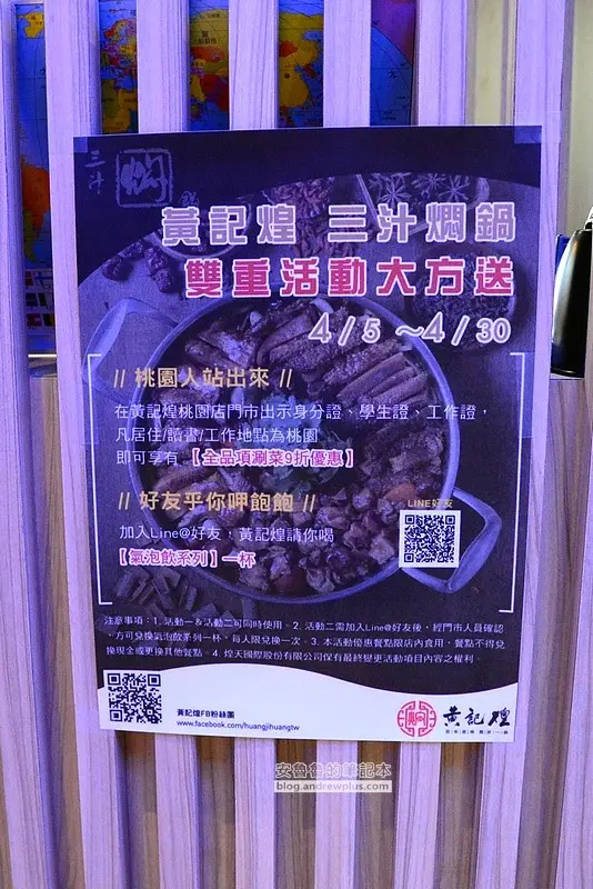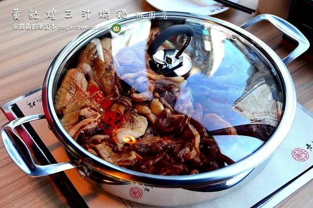 安魯魯的筆記不加一滴水燜鍋是怎麼一回事?沒有水作為媒介真能把牛肉、雞腿、白蝦、排骨給煮熟而且還不會燒焦??來自大陸有600家店的黃記煌三汁燜鍋,可真是引起了安魯魯的好奇心,除了在台北信義區的台北店,3月25日桃園店開幕於ATT筷時尚。今天專程回到了桃園,就是要來吃吃看這從清同治年間承襲到今日的名菜。從店內的一絲不苟的清潔衛生管理、細心的桌邊服務、獨門的醬汁,以及如變戲法般的燜煮方式,還能夠一鍋兩吃,傳統的菜色藉著現代化的經營管理,呈現出精緻美食的樣貌。到底要怎麼燜出一鍋好料呢? 請跟著安魯魯的相機,讓我們一起看下去~~店家資訊電話 02-7735-2822地址 桃園市桃園區中正路47號3樓(att筷時尚3樓) (點我看地圖)火車資訊 桃園火車站 (步行約3分鐘)營業時間 11:00~23:00低消 300元/人服務費 10%還有更多食記遊記在 安魯魯的筆記本▼黃記煌三汁燜鍋桃園店,就位在ATT筷食尚的3樓,走出桃園車站,往前順著中正路一直走3分鐘就能抵達,旁邊就是統領百貨,附近的幾間百貨公司旁就有收費停車場,成功路上有路邊的機車和汽車停車格,停車不會太麻煩!▼新開不久的ATT筷食尚,裡面全都是賣吃的,除了今天要來吃的黃記煌三汁燜鍋桃園店,還有幾家店頗引起我的注意的,而且由於是新式的店面設計,看起來超有質感,一點都不輸日本東京的特色餐廳▼順著電扶梯,來到了三樓▼一踏上三樓,看到的就是黃記煌三汁燜鍋桃園店!▼開幕優惠活動,從4/5一直到四月底,有興趣的朋友可以參考參考▼走進店裡,牆上的舊照片和四人座的小隔間,裝潢和格局有種香港茶餐廳的FU▼靠近落地窗,在廚房前面有6人座可以開2爐的圓桌▼以及四人座只有一爐圓桌▼還有這樣長型能開兩爐的四人桌▼從窗外看去就是桃園火車站前熱鬧的復興路,視野挺不錯的,窗口是朝南的,採光佳也不用擔心強烈的陽光會把人烤焦!▼不知道怎麼點的朋友也能直接參考套餐唷!今天和幾位格友要一起來吃吃這個四人套餐,所以可以選兩個主鍋,涮菜就各一份,飲料也是各來一份,第一次看到套餐搭配的飲料有啤酒的! 主餐的兩鍋我們選擇了海陸總匯和極鮮派對!▼趁著上菜之前,先來拍一下這乾淨的開放式廚房,各項食材都分門別類的放置,客人點的餐是用電子秤秤給客人!▼秤好重量之後,食材就開始處理先初步的調味,調理用的醬汁是精準地計算好份量,並且分裝在小包裝裡面,廚師使用的時候只需剪開醬汁包,倒進大鍋子裡面▼再均勻混和~▼然後再裝進密封罐裡面準備上桌▼出了廚房一直到客人桌上,都不用擔心食物會被汙染▼從食材的重量、調味的準確和密封罐保護的流程,這一絲不苟的程度實在令人佩服▼平常我們吃的涮涮鍋、燒烤,總是看到還沒下鍋煮的食材就暴露在空氣中,外頭噴濺的熱油、醬汁啦、有人打噴嚏、灰塵,或者不小心被打翻。在這裡不用擔心這些問題,而且新鮮、衛生整潔看得見▼保鮮盒上面附一個手套,不過這不是給客人用的,而是等一下桌邊服務的時候,服務人員要把食材取出鋪放在鍋子裡面時候要用的,在服務人員準備的時候,客人可以先吃吃小菜!▼皮蛋豆腐 110元嫩豆腐加上皮蛋和蔥花,醬油不會微甘太鹹,吃起來清爽~▼辣白菜 110元白菜軟嫩帶一點脆度,辣度適中,吃完了就開胃,準備作戰囉!▼老醋花生 110元看起來有點濕軟,但只有外層是酥軟的,花生裡面還是保持著原本的脆度,而且外皮沾著一層老醋,吃起來微微的酸,更襯托出花生原本的香甜▼百香山藥 130元滑脆口感的山藥,淋上了香香甜甜的百香果醬,吃起來爽口!▼桌邊也附上四種調味料讓客人自己調整味道▼在我們吃小菜的同時,服務人員已經開始在幫我們準備燜鍋了,主鍋整個烹煮的過程中真的沒加入一點水,而不讓食材燒焦的秘密就是底油、醬汁、和食物自身的水分! 所以整個烹煮的過程順序不但講究,連食材的切法也有訣竅的,那就是菱形切法,讓熱、水氣和醬汁可以在食材間流動,所以才能在燜的時候讓食物都能均勻的煮熟! 因此燜煮的步驟很重要~1. 底油 2.鋪料 3.調味 4.燜製 5.打汁、澆汁 6.再燜製 7.放上香菜開動囉!鍋子上先放入底油~要開始煮啦!!!▼服務人員戴上了手套開始把食材放到鍋子裡面,這位帥哥有夠細心的,不但分區擺好,而且擺的很漂亮~▼主鍋 - 極鮮派對裡面的食材有: 牛肚、排骨、雞腿肉和鯰魚,由於今天沒有鯰魚,所以換成了鯛魚肉每塊肉盡量不重疊,而且還留了點空間讓熱氣能夠在食物間遊走▼接著蓋上鍋蓋,進行第一次的燜製,依據食材的不同,燜製的時間也會不一樣,不過客人不用記那麼多,服務人員都會幫你記好好的,時間到就會跑來開鍋了!▼我們有兩個主鍋~所以繼續處理第二鍋!!▼主鍋 - 海陸總匯裡面的食材有: 精選牛肉、豬五花、白蝦、翅中,一樣也是擺的漂漂亮亮的▼接著灑上一些調味料▼就可以開始燜製囉!▼燜製完成之後,就要開始打汁和澆汁了,也就是把選好的醬汁均勻攪拌之後放進去鍋裡面!▼麻辣汁口味(微辣)(主鍋 - 極鮮派對)極鮮派對裡面有牛肚,所以我們就選了個麻辣汁來搭配,服務的帥哥就開始桌邊show囉!▼充分攪拌醬汁之後,就可以淋到第一次燜煮完畢的極鮮派對上囉!▼均勻的塗布在食材上面,這樣才能讓每一塊肉都吃到醬汁,醬汁也能順著肉塊之間的孔隙流到最下層,才不會煮到臭火乾~菜單上面寫說麻辣汁是用數十種藥材和辛香料調製而成,麻而不