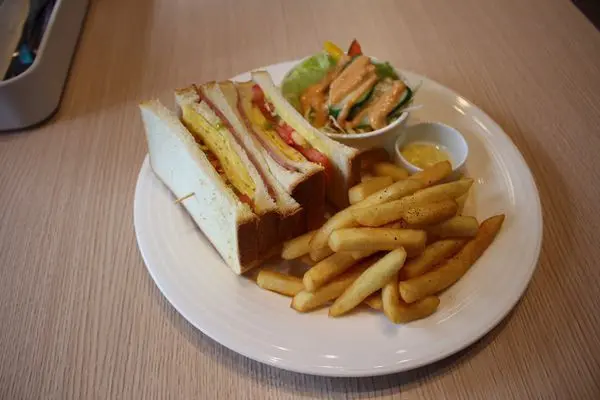 上次沒有介紹到二樓,位子還蠻多的餐具及杯水一樣是自取二樓也多了沙發椅可以坐直接進入重點這次來體驗看看早餐的部分~~火腿蛋三明治NT89搭配套餐很划算唷~~附上沙拉及薯條薯條炸得很酥脆,旁邊附上蜂蜜芥末醬沙拉部分醬可以少一點會更好一些~~三明治的部分份量蠻多的~~裡面的蛋嫩度不錯!!搭配融化的起司跟軟嫩的火腿搭配起來口感還不錯榛果拿鐵咖啡NT120簡單卻又不單調的拉花 搭配下面帶有甜甜榛果香氣的拿鐵咖啡喝起來香氣十足…Read More