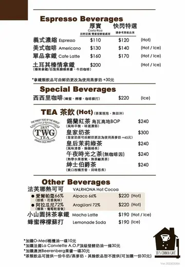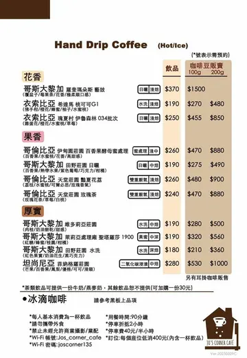 桃園咖啡廳推薦,沒想到桃園市區也有異國風的咖啡廳,在武陵高中附近的Jo’s Corner Cafe真的會讓人驚豔,從門口就會讓你彷彿一秒飛到歐洲,整個環境跟建築裝潢就像是南法莊園,店內用的是自家烘焙的咖啡豆、蛋糕、麵包,沒有太多正餐的選擇,很適合來這邊吃吃下午茶,相信女孩子來這裡一定從門外拍到門內,寫真集就給他拍起來啦Jo’s Corner Cafe也有附設停車場,入內用餐可以折抵兩小時的停車時間,真的很貼心方便呢Jo’s Corner Cafe|裝潢環境來這天下著雨,但每個角落還是充滿夢幻的氛圍,鵝黃色系的建築搭配門外的綠色草皮跟花叢造景,說你出國我都相信啦是不是像是南法普羅旺斯的莊園,設計的小細節都好到位,每個角落都好喜歡喔Jo’s Corner Cafe|室內環境店內也是超美的,Jo’s Corner Cafe分成兩個區塊,一邊是咖啡廳,另一邊則是可以租借的教室,很多少做課程都會來這邊租場地開課,咖啡廳這邊挑高的設計配上大面積的落地窗真的美翻了,望出去都是四周的綠意造景,在市區內有這麼悠閒地環境,來杯咖啡就能獲得一絲寧靜感受,而且很多婆婆媽媽也都會這邊喝下午茶耶窗邊真的好美,任何天氣都有不一樣的氛圍沙發區看似舒服,其實坐起來太低,哈哈Jo’s Corner Cafe|菜單Jo’s Corner Cafe基本上以輕食為主,在中午時段會有比薩類的餐點,算是比較吃得飽的東西,沒有套餐的選項,都是點單點的,單價算是中價位,但搭配它的環境我是覺得還算OK啦Jo’s Corner Cafe|推薦餐點下午茶司康組 180元司康組就是兩顆原味司康加上一條法國 La Conviette A.O.P 頂級發酵奶油跟澳洲Beerenberg果醬,果醬有草莓、藍莓、柑橘、黑莓可以選,本來覺得司康好小,結果搭配奶油跟草莓果醬也太好吃了,司康外皮微硬、裡面是鬆軟綿密的口感,La Conviette A.O.P 頂級發酵奶油很香,更添滑順口感,草莓果醬吃不完也可以帶回家喔一定要奶油跟果醬一起抹,吃來又香又甜,配上花茶或咖啡都好搭提拉米蘇 170元提拉米蘇現做的,等了30分鐘,吃起來是比較大人味的口感,用淺中焙的單品濃縮咖啡搭配法國灰雁伏特加釀製的咖啡酒製作,吃起來酒香味道鰻濃郁的,入口後會漫出淡淡的咖啡香氣,我還蠻喜歡的,不枉費等那麼久啊,哈哈午夜時光之茶 240元茶類的飲品是用茶葉現泡,不能回沖的,一開始沒注意這一點,一壺大概2杯多就喝完,覺得單價有點高,但茶是好喝的,淡淡的水果香氣跟司康很搭蜂蜜檸檬蘇打 190元蘇打也是小小杯,喝個沁涼感啦Jo’s Corner Cafe真的太美了,雖然當天氣候不好,店內又大爆滿的狀態,但因為桌距很寬,其實也不會太過干擾,還是會有舒適的感覺,服務人員也很貼心,整體的用餐環境真的很享受,我覺得天氣好我要再來一波啦,大家趕快收藏起來,這裡真的太美啦,帶女朋友來一定也會很開心,呵呵…查看更多