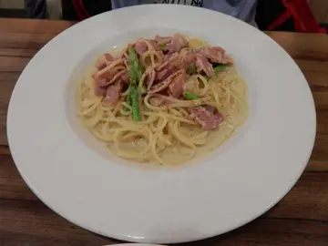 在關於義大利麵的食記裡,偶爾便會見到這家店的推廌,讓人深感好奇,於是趁晚餐機會找老大來探險。 進店須自己尋座位,桌上也無桌號,要指給櫃檯人員說明自己坐哪。點餐前店員告知已無粉紅醬義大利麵,大受打擊,因為聽說只有這項被推薦,無奈隨機亂點。 辣味蒜香透抽細麵 145元 奶油培根蘆筍麵 125元 透抽細麵算是清炒款,香氣炒得還不錯,蒜香若再濃烈些更好。細麵口感稍軟,透抽彈嫩。 奶油醬濃郁度可,搭配培根的鹹味與蘆筍爽脆,挺好入口。麵條咬勁比細麵多點。 茉莉綠奶茶 35元 奶油蔬菜玉米濃湯 35元 茉莉綠奶茶有點稀,考量價位不太要求。 玉米濃湯粉感十足,推測是粉的份量下太多,一整個喝不慣。 以義大利麵來說,mint的表現算中規中矩,多半價位也是吸引客潮的原因之一。至於粉紅醬的滋味究竟如何,只能成為謎團。…查看更多
