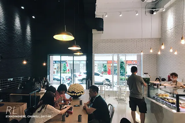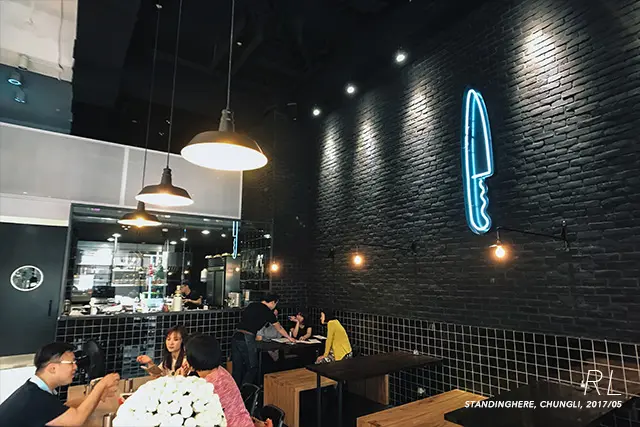 位於中壢 SOGO 商圈後方的海華特區,是間手工漢堡與法式甜點專賣店。因為裝潢十分有特色, 一半黑一半白,簡約時尚、有點韓系的感覺, 整個就是網美最愛,於是開幕以來就受到許多關注,立馬躍升為中壢特色餐廳、ig 打卡熱點!我當然也被那些照片燒到啦,中壢少見如此有質感的餐廳, 加上有法式甜點, 當然要去一下!於是從澳洲回來之後,我們幾個老同學又約了端午連假的某一天前往用餐,順便聊聊分享旅行中的趣事。我其實不太清楚為何店名要叫 ,但店裡大概就是右半邊是黑色的手工漢堡, 用 "R"而左半邊是白色的法式甜點, 用 "L"。海華店面的坪數都不大, 但因為有挑高設計,所以就算 有一半全黑也不覺得壓迫...但燈光稍暗是真的,所以原本店員安排我們坐靠牆的的桌子, 後來還是換到中間的大長桌。但我最屬意白色靠窗落地窗的位子, 可惜那裡都是兩人座。 也蠻多巧思之處,像是我很喜歡他們在兩面牆上用的霓虹燈管設計出來的刀子與打蛋器圖案,代表著手工漢堡與甜點, 別出心裁...甜點吧台上方吊著用工業燈泡排出來的矩陣, 十分好看,長桌中間放了一盆誇張滿的球菊, 教人喜歡,牆面上有 "RL" 的投影,漢堡製作區也以透明玻璃隔開, 大家可以直接看到他們作業,多少給客人一種安心的感覺。整個設計還在今年的 台灣室內設計大獎 (TID) 拿到商業空間類餐飲空間的金獎呢!!菜單的部份, 在我們造訪後, 做了一些調整,大家可以參考線上菜單: https://www.facebook.com/RLcuisinier/menu/之前 都是以漢堡套餐的方式販售, 漢堡+薯條+汽水價格落在 350~450 其實還蠻驚人的!如果再換成其它飲品, 又再加點甜的話... 嘖嘖嘖但現在 則是把它們拆了開來,可以單點漢堡, 再選擇是否加價升級套餐,除了薯條, 也多了沙拉和炸雞的選擇 若不想要附餐, 只想喝飲料的話, 也有 30 元可折抵。/BLEU (限量供應) $320我吃的是這道 "BLEU" (這裡的漢堡名都超難唸的哈哈哈)又是一道限量供應的誘惑...用的是他們自烤的竹炭麵包, 連麵包也追求黑色很用心欸!口感還蠻紮實的...麵包內側抹上了 blue 起司醬, 加了薄荷與蝦夷蔥, 帶點香草風味;中間夾的是烤過的牛肋排, 將肉削下來,肋排醬汁味道濃郁, 烤得十分入味並帶點焦香, 還挺好吃的...牛肉上加了酸黃瓜、芥末籽、油醋紫甘藍,用一些比較解膩的漬物蔬菜來均衡一下。我還算是蠻喜歡這個漢堡的啦,但吃到後面會有種口味太重的感覺。這裡的薯條很特別, 它不像傳統看到是一條一條方方的,而是一片片像是用削出來的,炸得比較乾一點, 邊邊會呈現微微的焦褐色...不知是否有再烤過或是溫度控制很好, 照理這樣削薄的薯片油會吸得更多,但 的薯條吃起來並不油!點餐時可以選擇蕃茄醬或是 BBQ 醬, 也是店家自製,我們有選不一樣的, 沾著吃都很涮嘴啊!份量也蠻多的, 後來大家還吃不完打包呢!Piment Vert $250同學之一因為店員的推薦而選了這個以青椒醬為主要風味的漢堡,看起來也還不錯, 培根裹牛肉加上乳酪真是肥肥肥肥死人...不過同學顯然踩到雷,那天的青椒醬完全是一個鹽罐子打翻的狀態,她整個吃到脾氣都來了,想說哪那麼誇張, 我吃了一小塊... 噢哞呀, 超!級!鹹 ))))))我想這應該是製作時有什麼意外,不然那鹹度真的太不正常了, 整個吃完可能腎會壞掉...後來店員看到剩一大半, 有主動詢問,我們也告知問題, 但也只得到會跟內部反應這樣的答案而已呀!Recette de Chef $320菜單上劃了菜刀, 是主廚推薦的意思...原本我也想點這道, 但因為同學先點了我才換成 Bleu。這漢堡蠻特別的是, 除了有一塊牛肉,還有一片綜合蔬彩排, 用地瓜、馬鈴薯、花椰菜、玉米、南瓜、豌豆等等做成,然後又加了 BBQ 蛋黃醬、兩種起司...會不會太豐富啦!!寫到這我就有點後悔當時沒堅持點這漢堡了哈哈哈RL 香草奶昔 $170先前有在朋友文章中看到這香草奶昔,整個就很吸睛, 根本是優雅版的瘋狂奶昔...所以儘管是所有飲品中最貴的, 還是點來喝喝看!這香草奶昔會使用當日烘焙的點心來裝飾,像當天是手指餅乾, 曾看過有加泡芙的...另外在擠上鮮奶油, 加上覆盆莓藍莓, 淋上巧克力醬;比較誇張的是抹在外圍的黑色芝麻花生醬, 上面還黏了些白芝麻和巧克力豆...但芝麻醬十分香郁啊, 整個就有點不知怎麼吃它們...拿起來舔嗎? 噢諾諾諾諾還是它們純粹就裝飾用的? 哈哈哈哈哈奶昔本人也蠻不錯的啦, 不會過份甜膩, 和那些"配件"搭起來剛剛好,只不過這樣一杯, 熱量真的很可怕就是了, 非常罪惡啊!波本莓果特調 $90另一款特調是這"波本莓果", 當天也好幾個同學點這杯。以紅茶為基底, 加入了自家種植製作的桑椹果醬, 莓果與檸檬片,再加一點波本威士忌...喝起來還蠻酸的, 果香十足, 還蠻清爽的,但酒味就淡淡的不太明顯。AVOCAT 酪梨塔 $160吃完餐, 當然不能放過這裡的法式甜點啊!這才是我來 的重點啊!同學們讓我去點, 一排裡比較讓我有興趣的就這酪梨塔和 Saint Honoré,應該也算是他們的招牌甜點吧?整個塔就是以酪梨奶醬和中間那塊方形的香草奶油組成,但我本以為底層應該還會有什麼不一樣的配方呢... 但就是酪梨醬而已...不過整個色澤很清新, 十分討喜啦。他們的塔皮烤得很漂亮, 相當薄脆,酪梨用在甜點上實在也蠻少見的, 味道溫潤,和香甜的香草奶油塊搭起來很剛好!而且香草味超濃, 裡頭可看見許多黑點點, 那正是香草籽啊~Saint Honoré 聖多諾黑 $180源自於巴黎的聖多諾