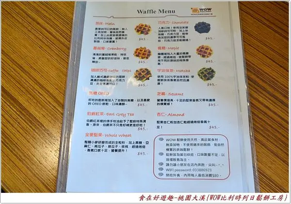 週末時總喜歡出來走走,雖然離桃園大溪很近確不怎麼常去,不過每次來都一定會吃上一碗賴祖傳豆花、老阿伯滷味,這天一樣照常來光顧老阿伯滷味,確意外發現到這間白色唯美的鬆餅店,地點相當隱秘,說他是大溪隱藏甜點也不為過。WOW列日鬆餅位於桃園大溪老街,隔壁就是遊客必來的景點之一「老阿伯現滷豆干」,如果那天我們沒有好奇心再往裡走一點,可能就真的錯過這間白色唯美優雅的小屋了!屋外飄洋的旗織及綠意點綴下,小清新的氛圍融入於靜謐的街道之中。走進WOW鬆餅讓我想起在日本遊玩時,隨意走進的可愛甜點店,潔白溫馨的氛圍很是討人喜歡,不過最讓我們在意的還是鬆餅還有什麼口味,看了看架上僅剩下十位數不到的鬆餅,原來是被前一位大戶買走,小姊說鬆餅皆是當日現做,賣完就沒了,不過還好喜歡的口味都還在架上。一近來座位區就看到有小小孩玩的積木遊戲區,真的很貼心也是我第一次看到,當天來天氣非常好不算太熱也不算太冷,選了靠窗的位置座下。大片透明窗下灑落著陽光,流動著人群梭影的街景,漸漸的時光流逝著光影不同美麗景緻映入眼簾,鄉村風格溫馨踏實感,讓人感覺上非常愜意。WOW鬆餅無10%服務費,餐具、水可自取,也有一些雜誌可看,店內還有免費提供Wifi,帶筆電來這裡或是吃鬆餅追劇,很清鬆的就渡過一個美好的午候,轉眼間天就黑了。▲WOW鬆餅菜單-因進口奶油原物料不斷調漲下,為維持產品最佳品質,部分商品價格有些微的調漲,實際價位依店內為主,WOW除了主打的鬆餅外,還有販售其他蛋糕類、鹹的鬆餅、咖啡,價位平易近人。▲拿鐵-一送上來熱氣飄散著迷人咖啡香,不過入飲確沒有聞起來那麼濃郁,淡淡的咖啡香不會過甜,反之有點過淡,搭配小點心剛剛好的合拍。▲大理石磅蛋糕-不規則美麗花紋黑白交錯的蛋糕,巧克力的甜與奶油香互相融合,紮實中帶點濕潤感又不會過於甘口。▲檸檬鬆餅-使用比利時珍珠糖經鬆餅機烘烤後,金黃可口的外觀又有美麗的糖霜,入口微酥又香又鬆軟,裡面還藏有一顆顆未融化的粗糖粒,搭配檸檬的酸甜,豐富的口感,不饋是「限定」口味,很讓人驚豔。▲ 抹茶鬆餅-檸檬鬆餅已經很讓人驚豔,抹茶鬆餅更是讓抹茶控的我們愛不釋口,淡淡抹茶的苦味與自然的茶香,粗糖粒甜味與苦味恰到好處,外酥內軟,搭配咖啡實在太完美。【MerMer食間】不經意間意外發現可愛的鬆餅屋,隱藏著令我們驚豔的鬆餅,美好窗光下光影變化,陪伴我們渡過愜意的午後時光,店內販售有甜、也有鹹的鬆餅,以及人氣鬆餅帕菲,寫完這篇又想嚐嚐那一點甜了。 ///INFO///WOW比利時列日鬆餅工房地址:桃園縣大溪鎮登龍路5-8號1F電話:03-3886923營業時間:11:30-18:30 (週一、二公休)◆ Wifi / 內用低消80 / 禁帶外食 / 無10%服務費女子的休假計劃…查看更多