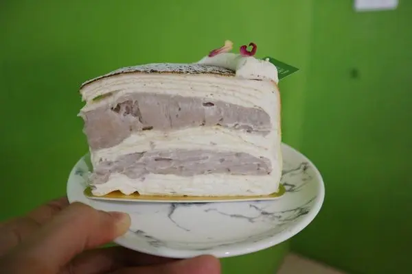 芋頭塊綿密的口感和蛋皮及奶油的滑順,造就了層次豐富的千層蛋糕