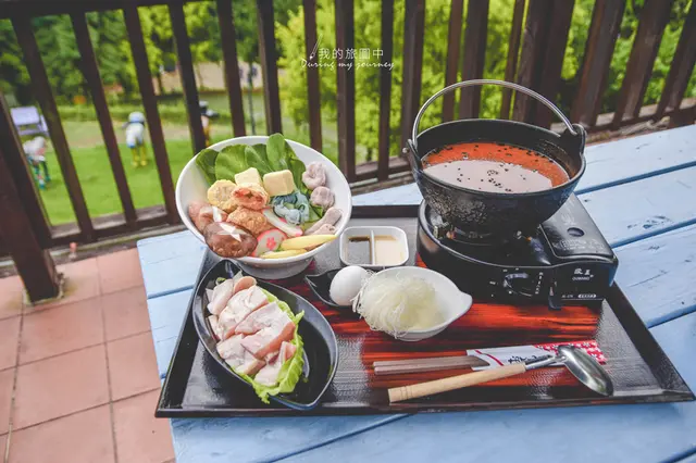 結束與羊兒的追逐遊戲後,午餐時間快速的來臨了,我們點的鍋物已經準備好等著開動。