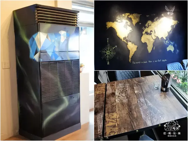 ▲『寶樂咖啡餐酒館 Polar Coffee Bistro』冷氣機「極光北極熊」、牆上的世界地圖、每張木桌上的美式圖案,也都是老闆娘親手設計的唷!