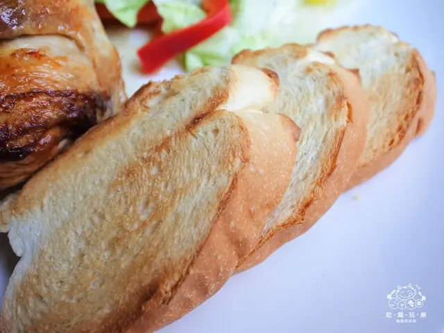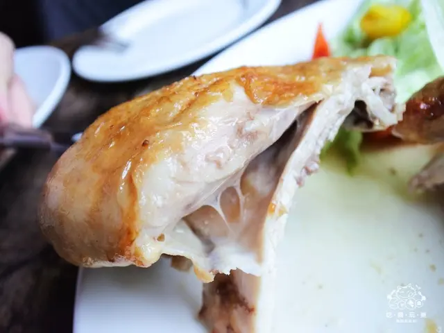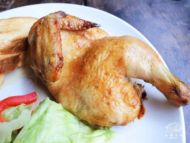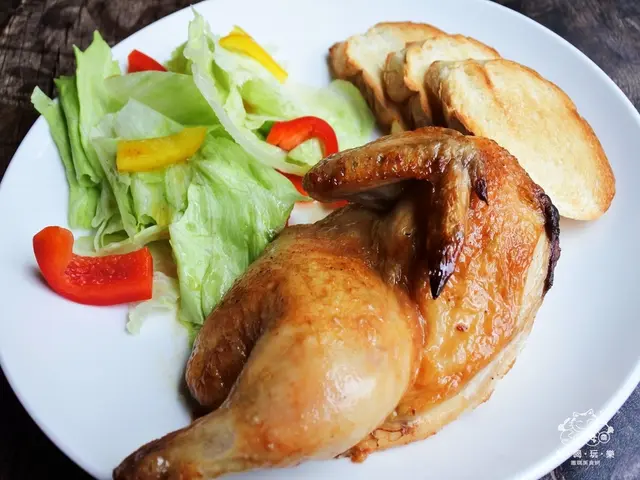 鮮嫩多汁的烤半雞,用簡單的義式香料醃漬後,進烤箱烤30分鐘,直接嚐到雞肉的香甜味,也有淡淡的香料味,吃起來很嫩不會柴,配菜佐新鮮的生菜沙拉,很新鮮甘甜,麵包烤的適中酥脆,滿滿的蛋白質與纖維,烤雞現做要等半小時,建議可以先來電預約喔!