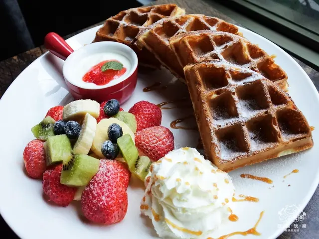 採用豐富的季節性水果,草莓跟香蕉酸酸甜甜的口感清爽又不膩,搭配手打鮮奶油及新鮮的白蘭地紅莓醬優格,鬆餅外皮烤得很酥脆 吃起來很Q彈飽滿紮實,令人滿足的大人味,淋上白蘭地紅莓醬優格搭配著鬆餅一起吃又是另外一個適合輕熟女的下午茶甜點!現在點餐附的是冬季限定的草莓果醬。