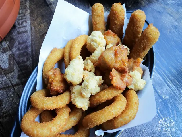 料多實在的組合,雖說是炸物,但是吃起來一點也不油膩,除了一般坊間炸物拼盤有的馬札瑞拉起司條、洋蔥圈、雞米花等基本款之外,還多了唐揚雞,主廚私房香料醃製,沒有裹厚重粉衣, 唐揚雞一咬下去就有濃郁的香料味,清爽的雞米花沾番茄跟黃芥末醬剛剛好,這起司條超犯規der,牽絲可以牽的超長,吃起來起司香也非常噴香誘人,洋蔥圈跟馬札瑞拉起司條搭配調酒或風味茶飲,適合下午茶或是晚餐後的小酌點心,喜歡重口味的一定要試試啊。