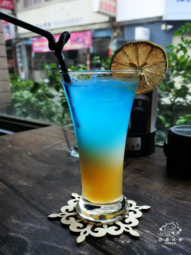 看起來就像在海洋游泳一樣,顏色非常夢幻漂亮,是一款女孩兒非常喜愛的飲品之一,下層是可爾必思乳酸菌飲料,搭配藍柑橘,喝前要攪拌均勻,整體口感酸甜、濃郁及滑順清爽!