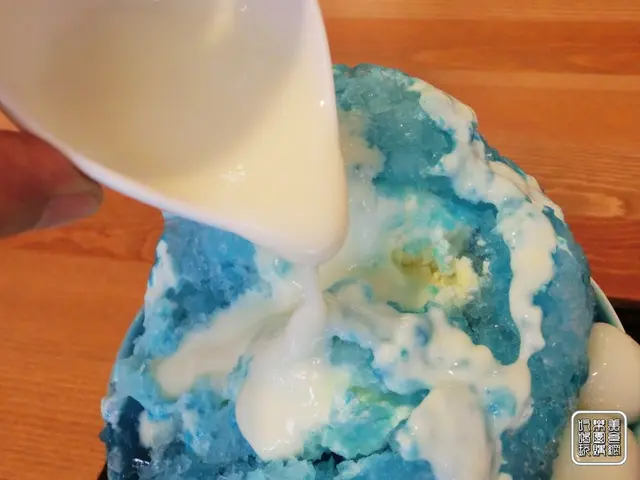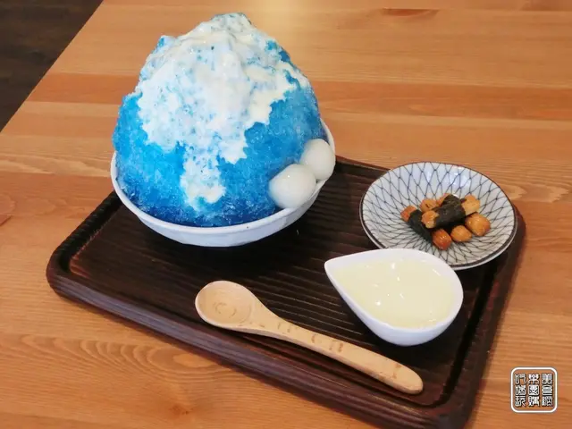 ▲『暖食涼品』富士山腳下,這個冰品的名稱很特別,湖水藍的富士山與象徵融雪的優格超像富士山的雪景,