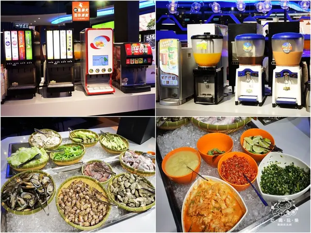 店裡嚴選多種新鮮食材,有頂級肉品、新鮮海鮮、各式鮮蔬、飲料吧、冰淇淋通通無限供應。