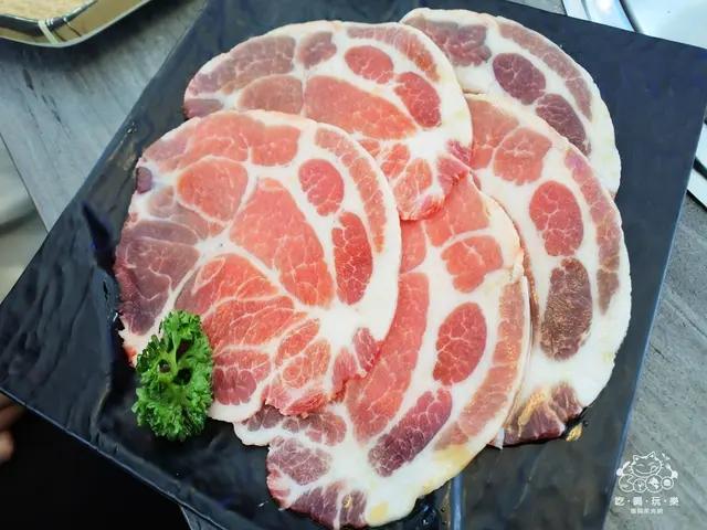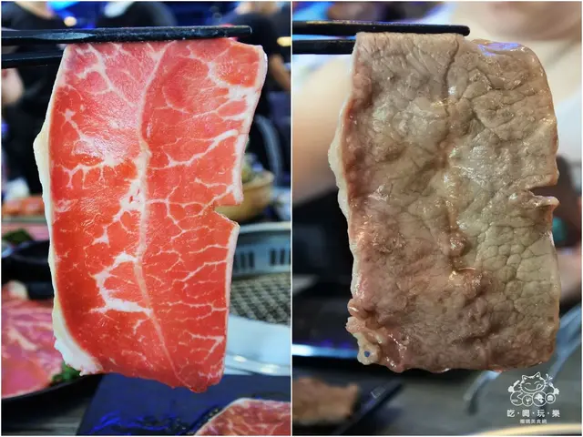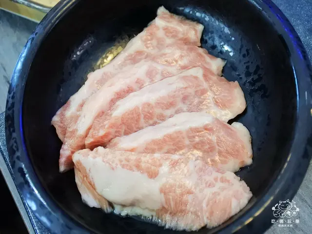 豬肉片的部分則是肥瘦各半,且肉片有一定厚度,有種大塊吃肉的快感,喜歡肉片好大一塊,就算燒烤後也不會太縮水,有點Q彈的口感,不肥不油,口感鮮嫩順口,吃起來相當美味~完全沒有乾柴感!